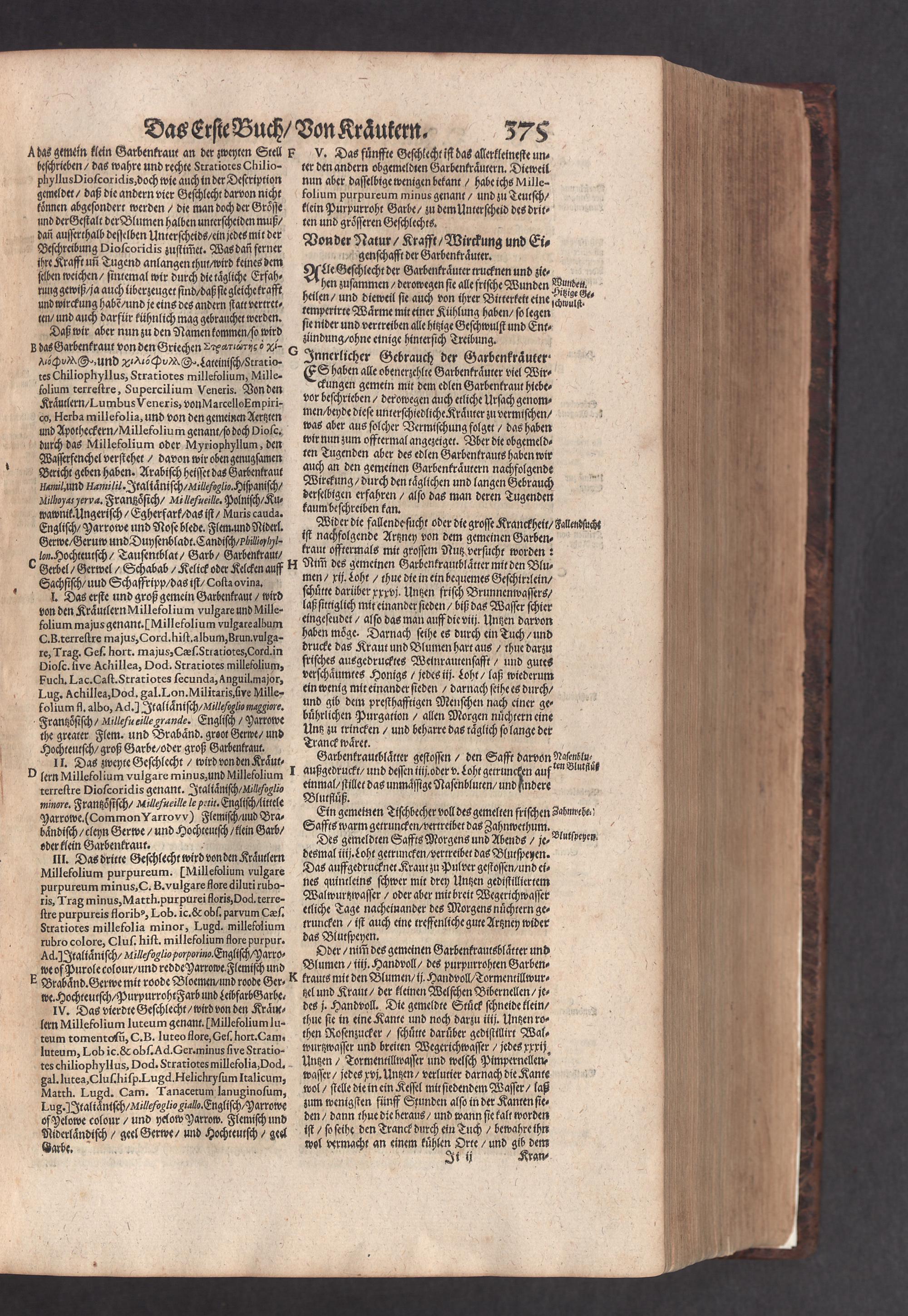 D. Jacobi Theodori Tabernaemontani, Neu vollkommen Kräuter-Buch : Darinnen Uber 3000. Kräuter/ mit schönen und kunstlichen Figuren/ auch deren Underscheid und Würckung/ samt ihren Namen in mancherley Sprachen/ beschrieben: Desgleichen auch/ wie dieselbige in allerhand Kranckheiten/ beyde der Menschen und des Viehs/ sollen angewendet und gebraucht werden/ angezeigt wird. Erstlichen durch Casparum Bauhinum D. und Profess. Basil. mit vielen neuen Figuren/ nutzlichen Artzneyen/ und anderem/ mit sonderem Fleis gebesseret/ Zum Andern Durch Hieronymum Bauhinum D. und Profess. Basil. mit sehr nutzlichen Marginalien, Synonimis, neuen Registeren und anderem vermehrt