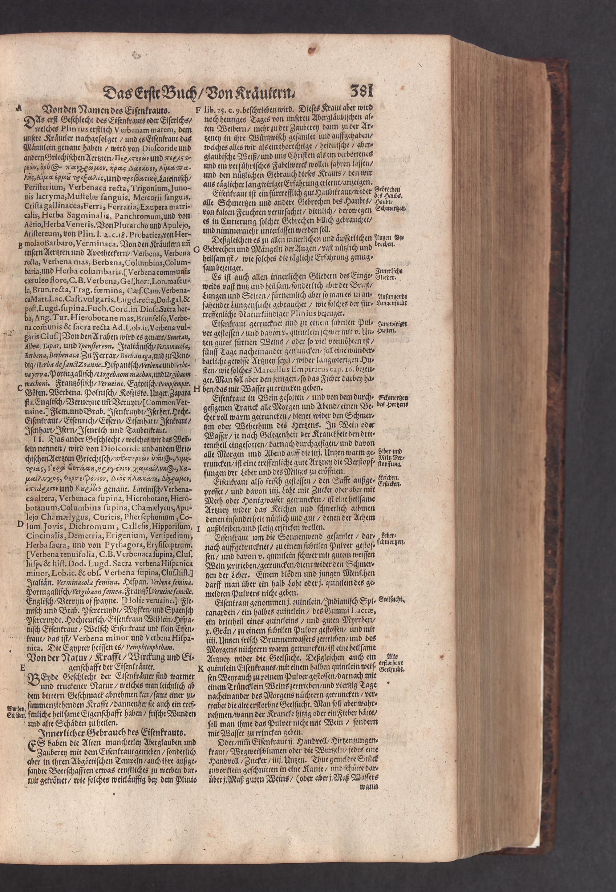 D. Jacobi Theodori Tabernaemontani, Neu vollkommen Kräuter-Buch : Darinnen Uber 3000. Kräuter/ mit schönen und kunstlichen Figuren/ auch deren Underscheid und Würckung/ samt ihren Namen in mancherley Sprachen/ beschrieben: Desgleichen auch/ wie dieselbige in allerhand Kranckheiten/ beyde der Menschen und des Viehs/ sollen angewendet und gebraucht werden/ angezeigt wird. Erstlichen durch Casparum Bauhinum D. und Profess. Basil. mit vielen neuen Figuren/ nutzlichen Artzneyen/ und anderem/ mit sonderem Fleis gebesseret/ Zum Andern Durch Hieronymum Bauhinum D. und Profess. Basil. mit sehr nutzlichen Marginalien, Synonimis, neuen Registeren und anderem vermehrt