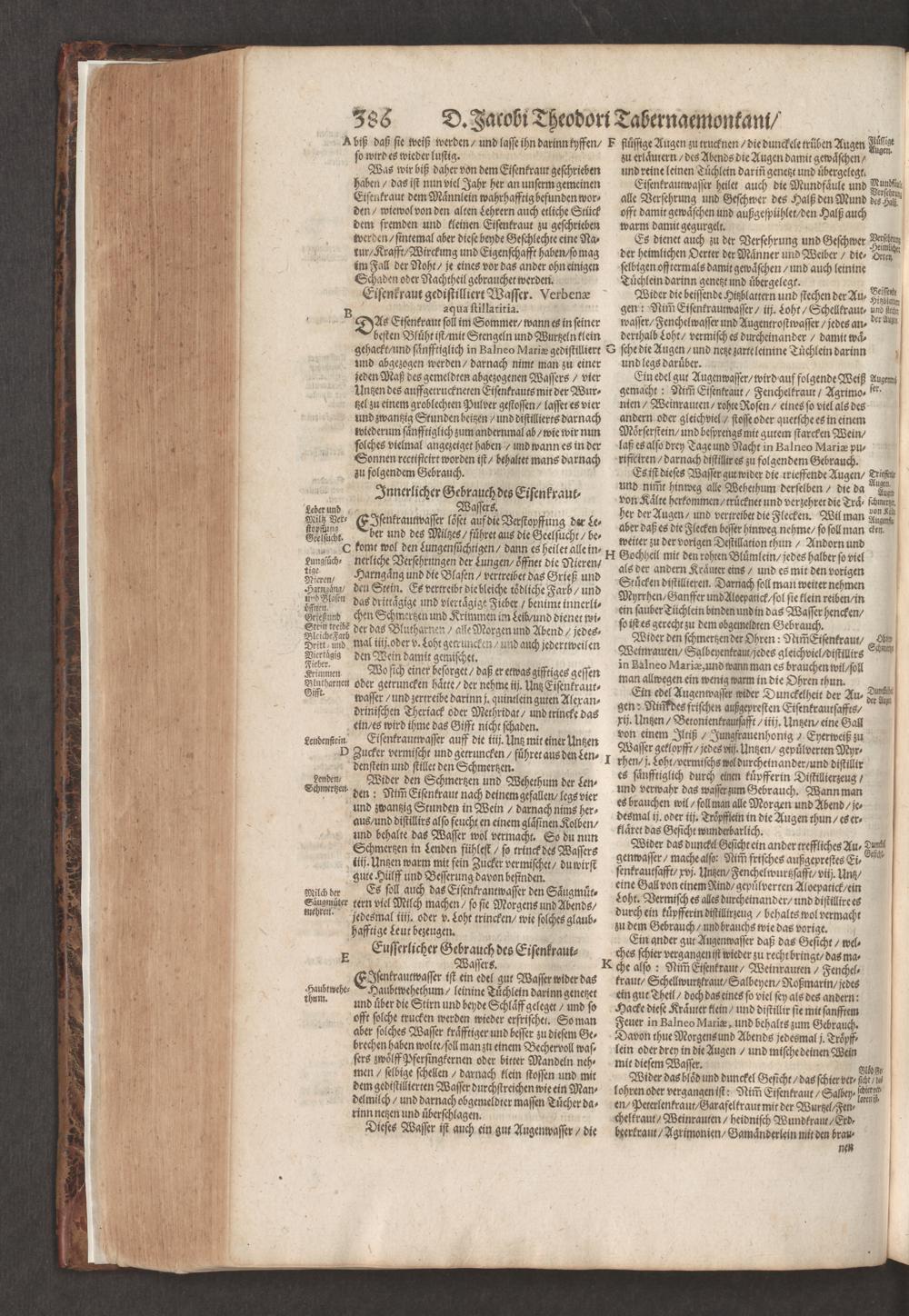 D. Jacobi Theodori Tabernaemontani, Neu vollkommen Kräuter-Buch : Darinnen Uber 3000. Kräuter/ mit schönen und kunstlichen Figuren/ auch deren Underscheid und Würckung/ samt ihren Namen in mancherley Sprachen/ beschrieben: Desgleichen auch/ wie dieselbige in allerhand Kranckheiten/ beyde der Menschen und des Viehs/ sollen angewendet und gebraucht werden/ angezeigt wird. Erstlichen durch Casparum Bauhinum D. und Profess. Basil. mit vielen neuen Figuren/ nutzlichen Artzneyen/ und anderem/ mit sonderem Fleis gebesseret/ Zum Andern Durch Hieronymum Bauhinum D. und Profess. Basil. mit sehr nutzlichen Marginalien, Synonimis, neuen Registeren und anderem vermehrt