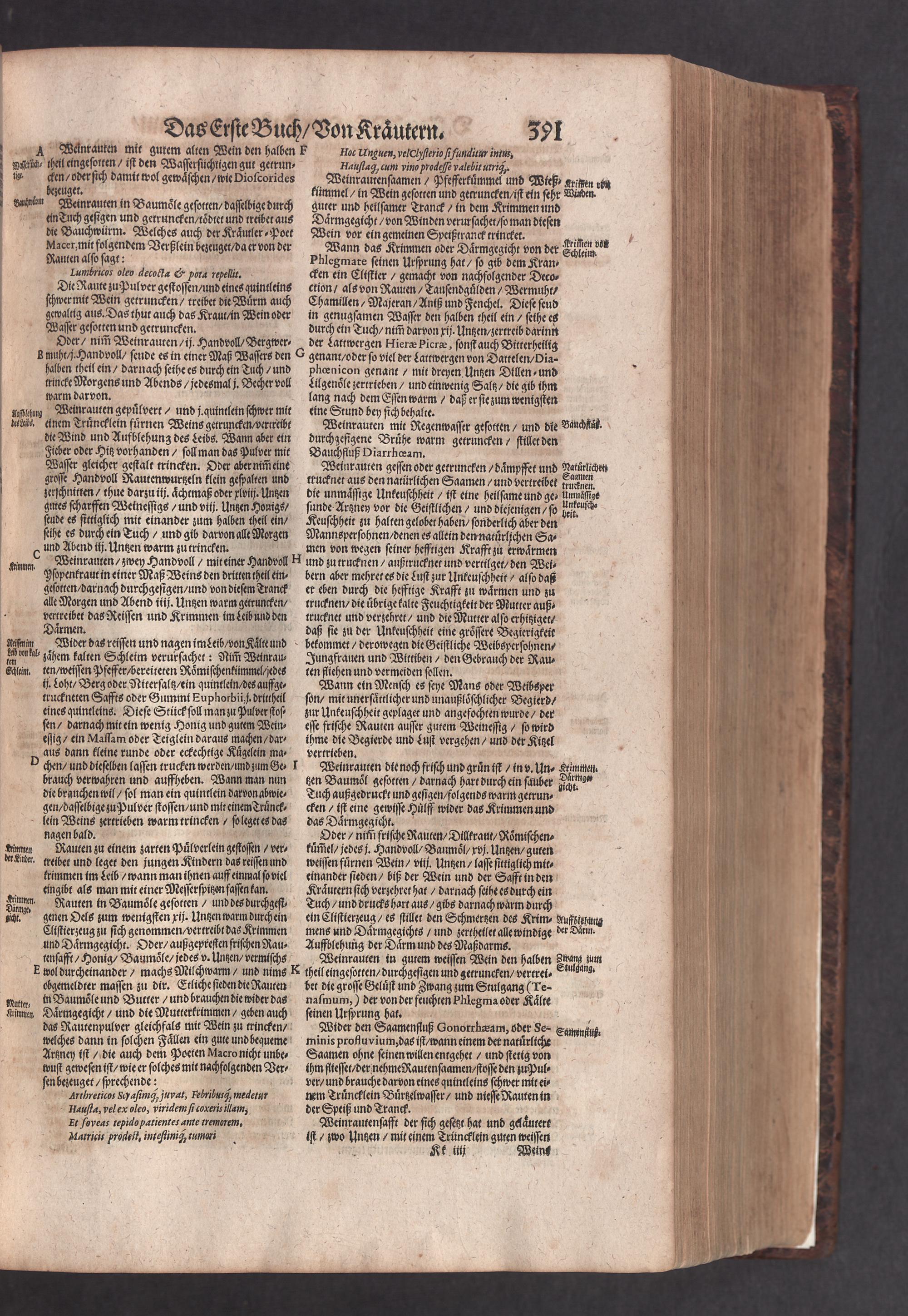 D. Jacobi Theodori Tabernaemontani, Neu vollkommen Kräuter-Buch : Darinnen Uber 3000. Kräuter/ mit schönen und kunstlichen Figuren/ auch deren Underscheid und Würckung/ samt ihren Namen in mancherley Sprachen/ beschrieben: Desgleichen auch/ wie dieselbige in allerhand Kranckheiten/ beyde der Menschen und des Viehs/ sollen angewendet und gebraucht werden/ angezeigt wird. Erstlichen durch Casparum Bauhinum D. und Profess. Basil. mit vielen neuen Figuren/ nutzlichen Artzneyen/ und anderem/ mit sonderem Fleis gebesseret/ Zum Andern Durch Hieronymum Bauhinum D. und Profess. Basil. mit sehr nutzlichen Marginalien, Synonimis, neuen Registeren und anderem vermehrt