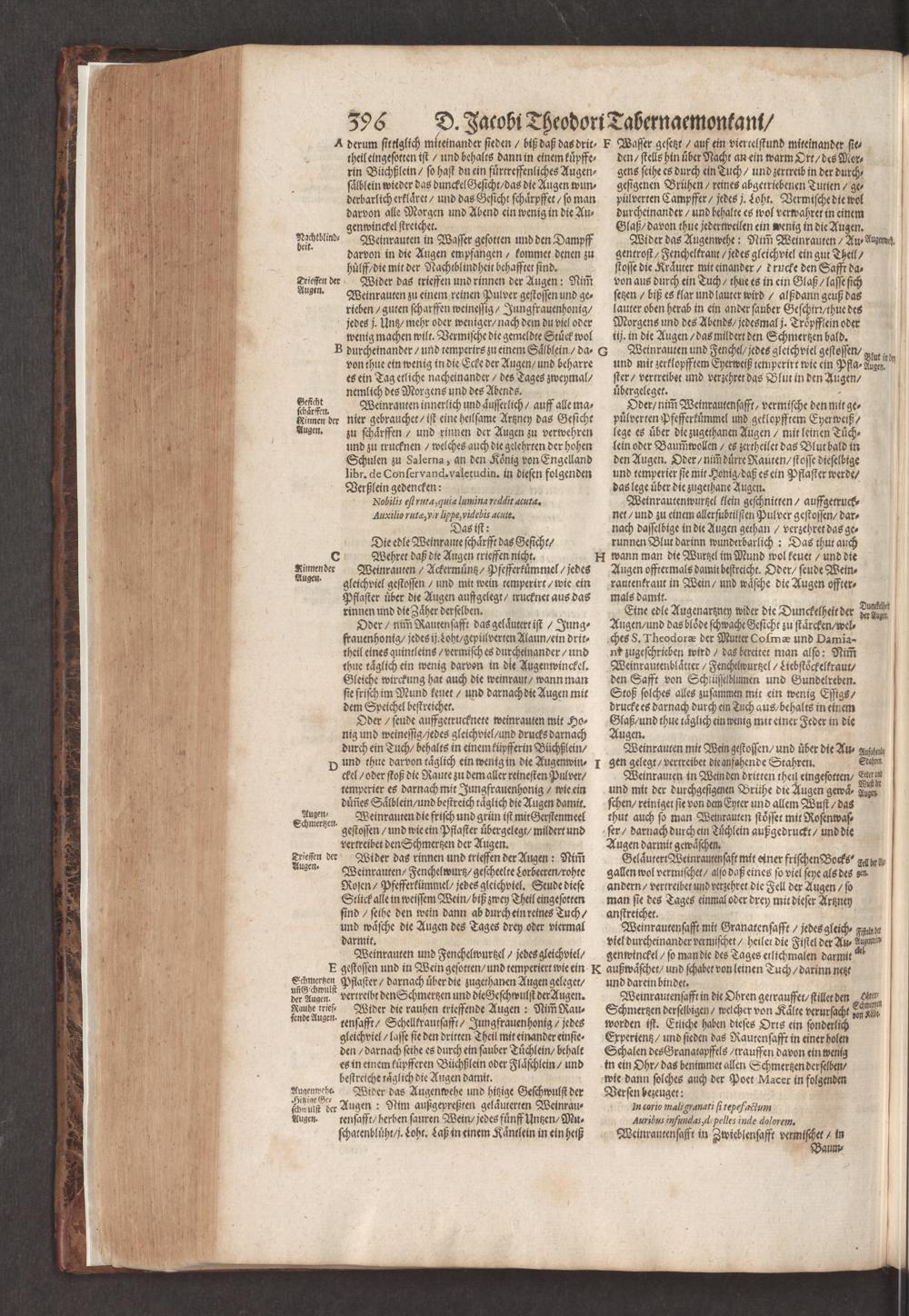D. Jacobi Theodori Tabernaemontani, Neu vollkommen Kräuter-Buch : Darinnen Uber 3000. Kräuter/ mit schönen und kunstlichen Figuren/ auch deren Underscheid und Würckung/ samt ihren Namen in mancherley Sprachen/ beschrieben: Desgleichen auch/ wie dieselbige in allerhand Kranckheiten/ beyde der Menschen und des Viehs/ sollen angewendet und gebraucht werden/ angezeigt wird. Erstlichen durch Casparum Bauhinum D. und Profess. Basil. mit vielen neuen Figuren/ nutzlichen Artzneyen/ und anderem/ mit sonderem Fleis gebesseret/ Zum Andern Durch Hieronymum Bauhinum D. und Profess. Basil. mit sehr nutzlichen Marginalien, Synonimis, neuen Registeren und anderem vermehrt