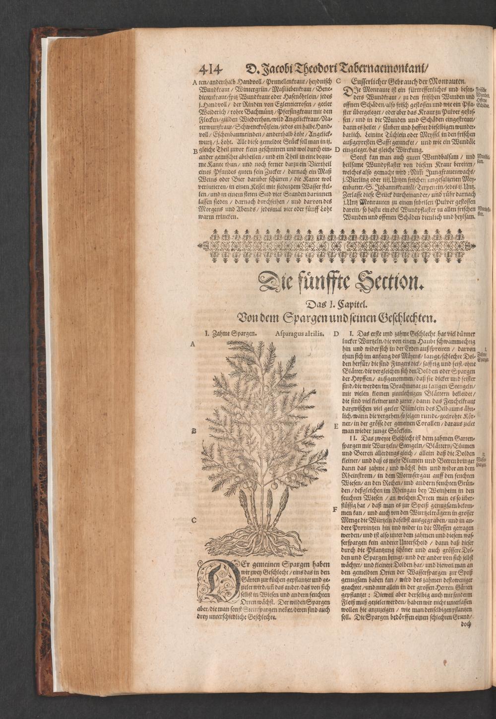 D. Jacobi Theodori Tabernaemontani, Neu vollkommen Kräuter-Buch : Darinnen Uber 3000. Kräuter/ mit schönen und kunstlichen Figuren/ auch deren Underscheid und Würckung/ samt ihren Namen in mancherley Sprachen/ beschrieben: Desgleichen auch/ wie dieselbige in allerhand Kranckheiten/ beyde der Menschen und des Viehs/ sollen angewendet und gebraucht werden/ angezeigt wird. Erstlichen durch Casparum Bauhinum D. und Profess. Basil. mit vielen neuen Figuren/ nutzlichen Artzneyen/ und anderem/ mit sonderem Fleis gebesseret/ Zum Andern Durch Hieronymum Bauhinum D. und Profess. Basil. mit sehr nutzlichen Marginalien, Synonimis, neuen Registeren und anderem vermehrt