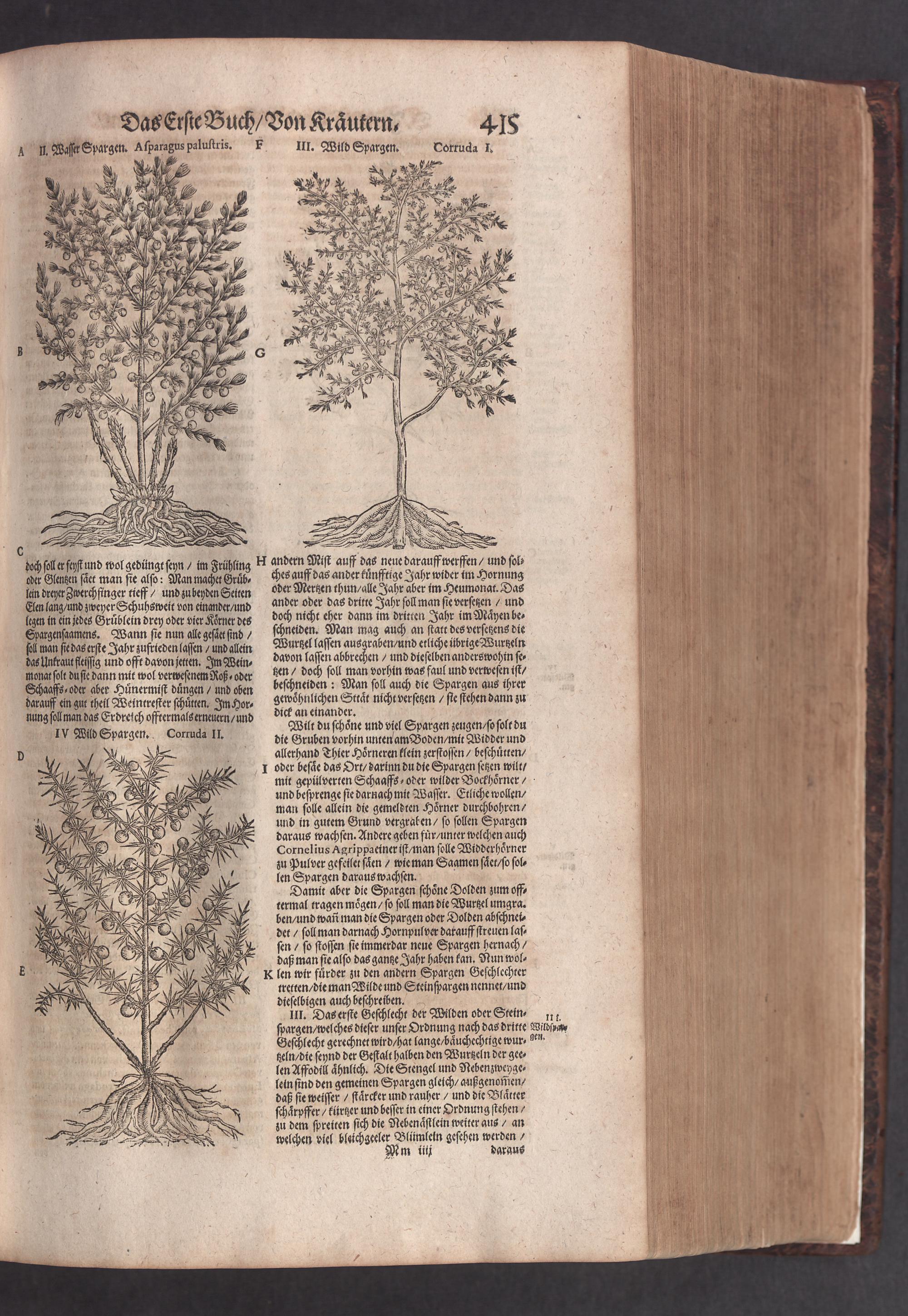 D. Jacobi Theodori Tabernaemontani, Neu vollkommen Kräuter-Buch : Darinnen Uber 3000. Kräuter/ mit schönen und kunstlichen Figuren/ auch deren Underscheid und Würckung/ samt ihren Namen in mancherley Sprachen/ beschrieben: Desgleichen auch/ wie dieselbige in allerhand Kranckheiten/ beyde der Menschen und des Viehs/ sollen angewendet und gebraucht werden/ angezeigt wird. Erstlichen durch Casparum Bauhinum D. und Profess. Basil. mit vielen neuen Figuren/ nutzlichen Artzneyen/ und anderem/ mit sonderem Fleis gebesseret/ Zum Andern Durch Hieronymum Bauhinum D. und Profess. Basil. mit sehr nutzlichen Marginalien, Synonimis, neuen Registeren und anderem vermehrt