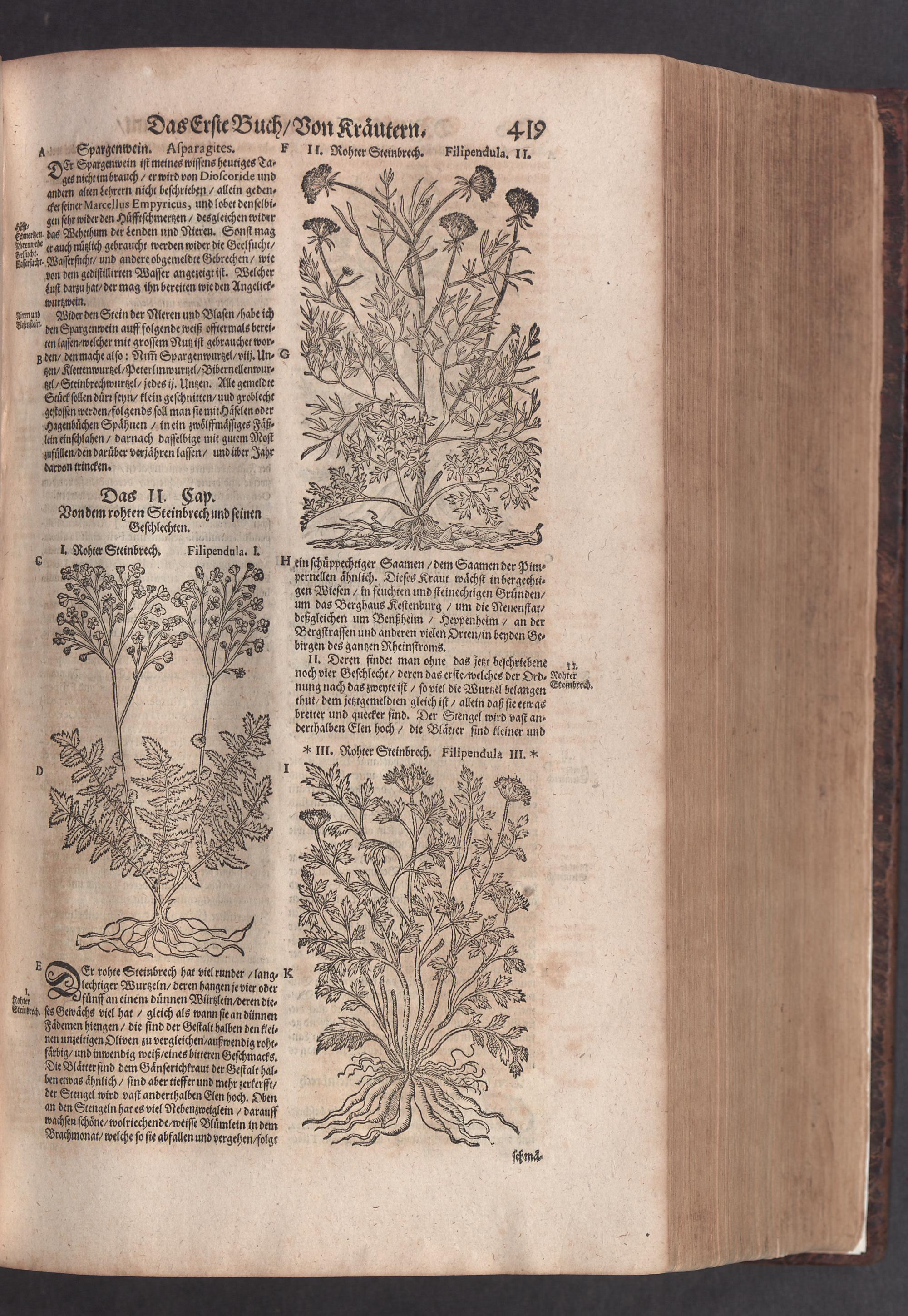 D. Jacobi Theodori Tabernaemontani, Neu vollkommen Kräuter-Buch : Darinnen Uber 3000. Kräuter/ mit schönen und kunstlichen Figuren/ auch deren Underscheid und Würckung/ samt ihren Namen in mancherley Sprachen/ beschrieben: Desgleichen auch/ wie dieselbige in allerhand Kranckheiten/ beyde der Menschen und des Viehs/ sollen angewendet und gebraucht werden/ angezeigt wird. Erstlichen durch Casparum Bauhinum D. und Profess. Basil. mit vielen neuen Figuren/ nutzlichen Artzneyen/ und anderem/ mit sonderem Fleis gebesseret/ Zum Andern Durch Hieronymum Bauhinum D. und Profess. Basil. mit sehr nutzlichen Marginalien, Synonimis, neuen Registeren und anderem vermehrt