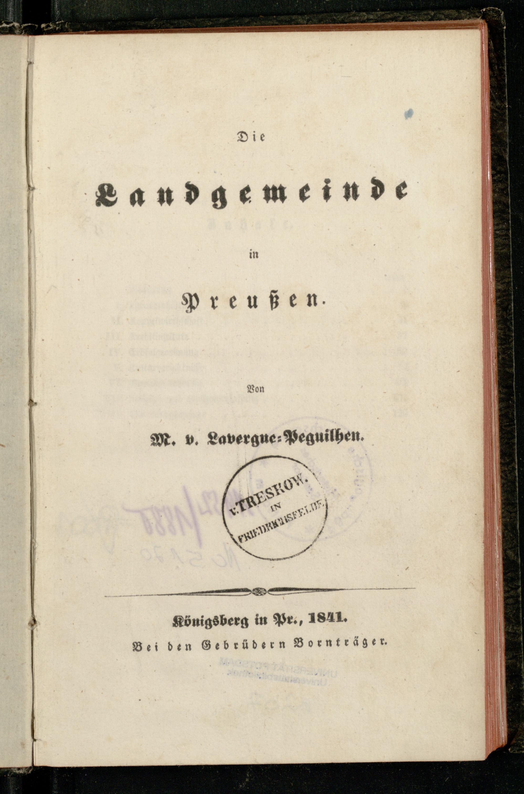 Die Landgemeinde in Preußen / von Moritz von Lavergne-Peguilhen