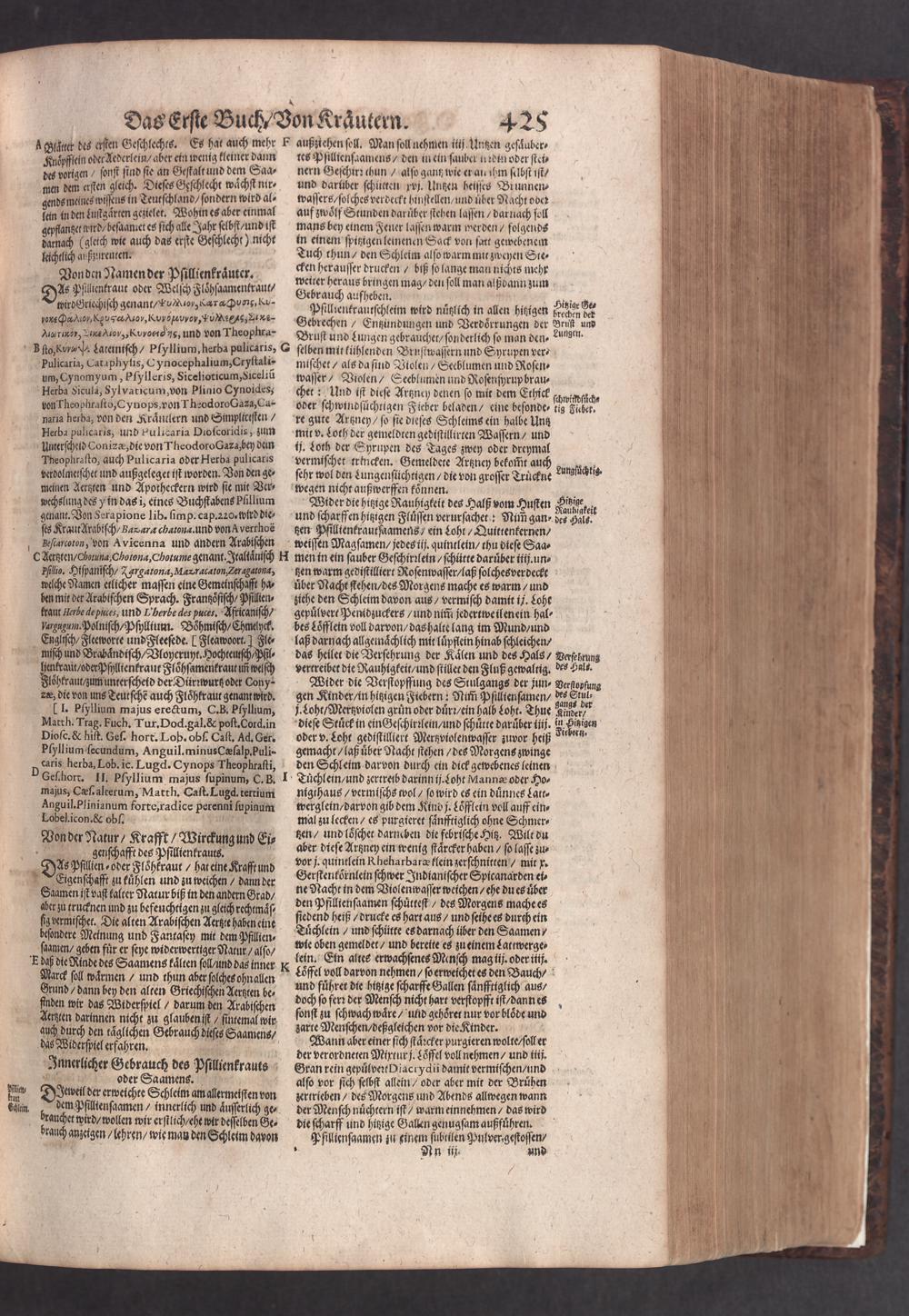 D. Jacobi Theodori Tabernaemontani, Neu vollkommen Kräuter-Buch : Darinnen Uber 3000. Kräuter/ mit schönen und kunstlichen Figuren/ auch deren Underscheid und Würckung/ samt ihren Namen in mancherley Sprachen/ beschrieben: Desgleichen auch/ wie dieselbige in allerhand Kranckheiten/ beyde der Menschen und des Viehs/ sollen angewendet und gebraucht werden/ angezeigt wird. Erstlichen durch Casparum Bauhinum D. und Profess. Basil. mit vielen neuen Figuren/ nutzlichen Artzneyen/ und anderem/ mit sonderem Fleis gebesseret/ Zum Andern Durch Hieronymum Bauhinum D. und Profess. Basil. mit sehr nutzlichen Marginalien, Synonimis, neuen Registeren und anderem vermehrt