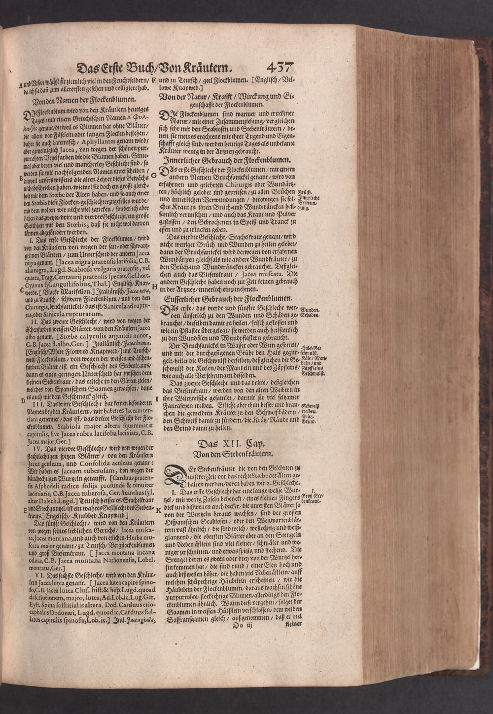 D. Jacobi Theodori Tabernaemontani, Neu vollkommen Kräuter-Buch : Darinnen Uber 3000. Kräuter/ mit schönen und kunstlichen Figuren/ auch deren Underscheid und Würckung/ samt ihren Namen in mancherley Sprachen/ beschrieben: Desgleichen auch/ wie dieselbige in allerhand Kranckheiten/ beyde der Menschen und des Viehs/ sollen angewendet und gebraucht werden/ angezeigt wird. Erstlichen durch Casparum Bauhinum D. und Profess. Basil. mit vielen neuen Figuren/ nutzlichen Artzneyen/ und anderem/ mit sonderem Fleis gebesseret/ Zum Andern Durch Hieronymum Bauhinum D. und Profess. Basil. mit sehr nutzlichen Marginalien, Synonimis, neuen Registeren und anderem vermehrt