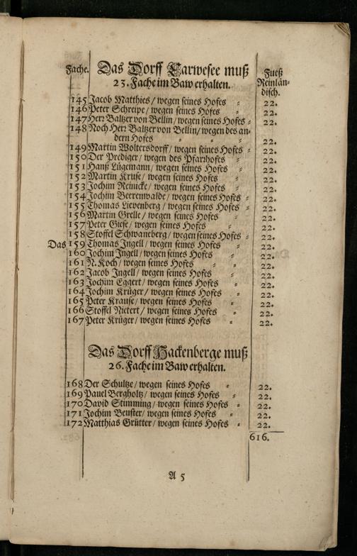Beschreibung Des Fehr-Dammes Zu FehrBellin : 1. Wie lang der Fehr-Damm ... erhalten werden muß. 2. Wer die Materialien an Sand und Steinen ... lassen muß. 3. Welchie die Anfuhre zu thun schuldig. 4. Auch welche bey Erbawung der Brücke Hand-Dienste thun müssen. 5. Und welche dahingegen von dem Brükken-Gelde befreyet seyn / Beschrieben in Anno 1645. durch den domaligen Churfürstl. Amptschreiber Herr Johann Kochen. In Anno 1664. Revidiret/ durch die domalige Beampte/ mit Zuziehung des Zollverwalters/ Johann Schneiders. Und in Anno 1680. abermal Revidiret ... und wieder in richtigen Stand gebracht ...