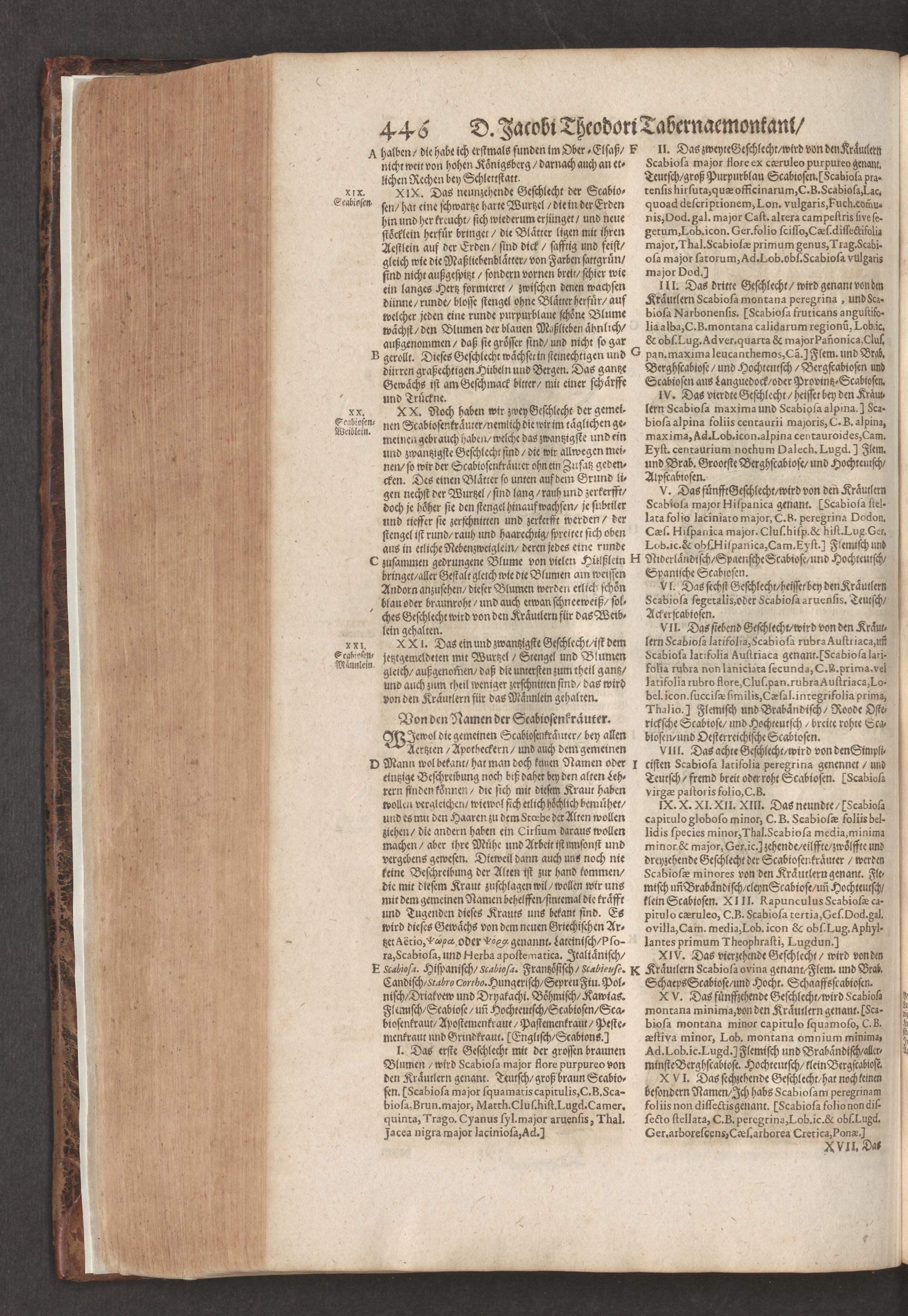 D. Jacobi Theodori Tabernaemontani, Neu vollkommen Kräuter-Buch : Darinnen Uber 3000. Kräuter/ mit schönen und kunstlichen Figuren/ auch deren Underscheid und Würckung/ samt ihren Namen in mancherley Sprachen/ beschrieben: Desgleichen auch/ wie dieselbige in allerhand Kranckheiten/ beyde der Menschen und des Viehs/ sollen angewendet und gebraucht werden/ angezeigt wird. Erstlichen durch Casparum Bauhinum D. und Profess. Basil. mit vielen neuen Figuren/ nutzlichen Artzneyen/ und anderem/ mit sonderem Fleis gebesseret/ Zum Andern Durch Hieronymum Bauhinum D. und Profess. Basil. mit sehr nutzlichen Marginalien, Synonimis, neuen Registeren und anderem vermehrt