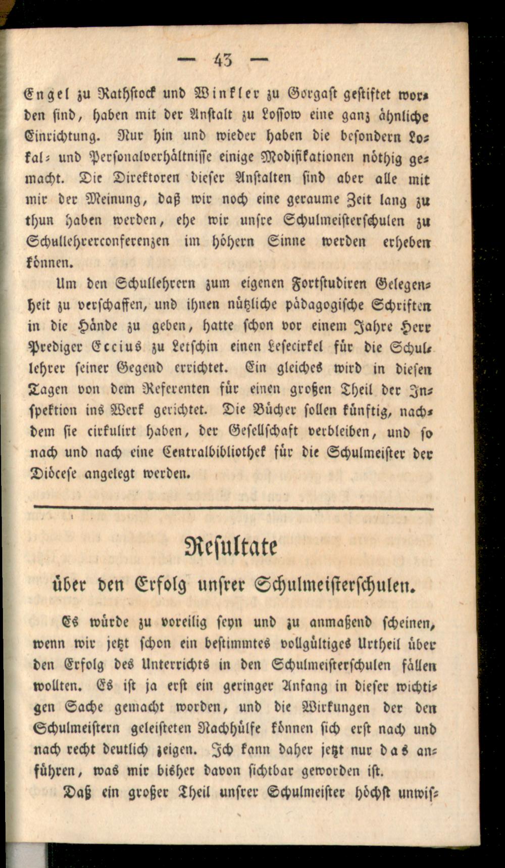 Resultate über den Erfolg unsrer Schulmeisterschulen.