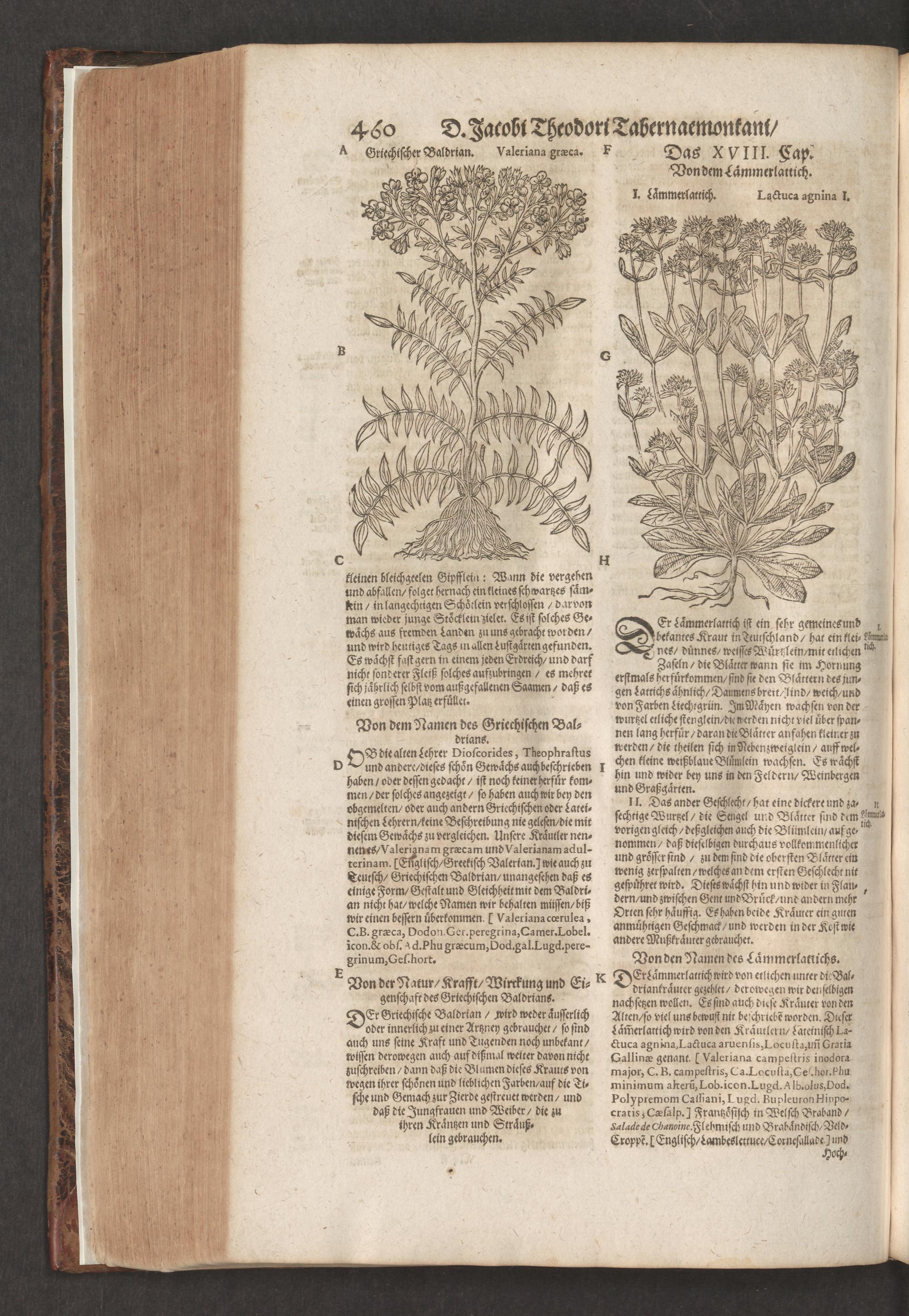 D. Jacobi Theodori Tabernaemontani, Neu vollkommen Kräuter-Buch : Darinnen Uber 3000. Kräuter/ mit schönen und kunstlichen Figuren/ auch deren Underscheid und Würckung/ samt ihren Namen in mancherley Sprachen/ beschrieben: Desgleichen auch/ wie dieselbige in allerhand Kranckheiten/ beyde der Menschen und des Viehs/ sollen angewendet und gebraucht werden/ angezeigt wird. Erstlichen durch Casparum Bauhinum D. und Profess. Basil. mit vielen neuen Figuren/ nutzlichen Artzneyen/ und anderem/ mit sonderem Fleis gebesseret/ Zum Andern Durch Hieronymum Bauhinum D. und Profess. Basil. mit sehr nutzlichen Marginalien, Synonimis, neuen Registeren und anderem vermehrt