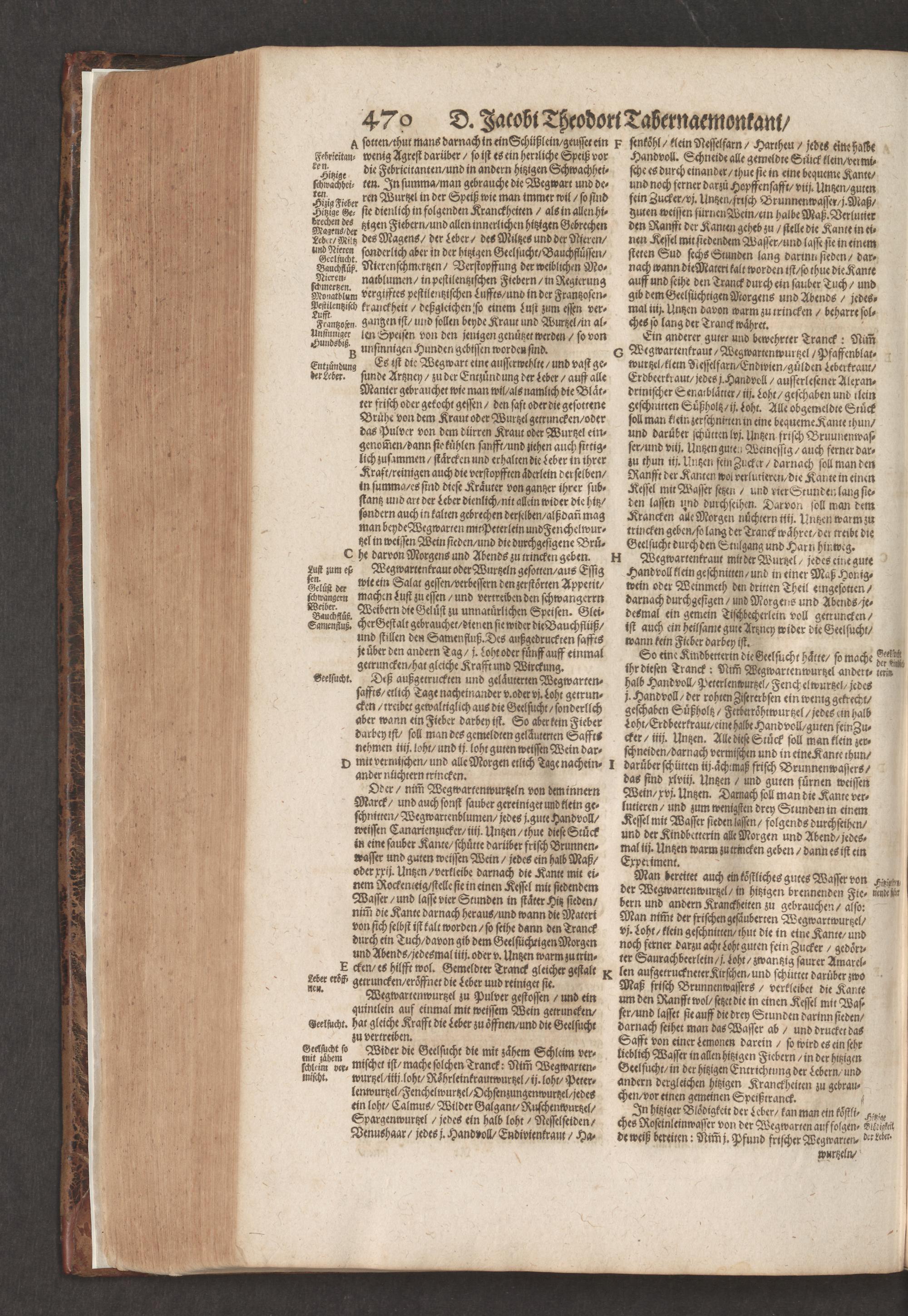 D. Jacobi Theodori Tabernaemontani, Neu vollkommen Kräuter-Buch : Darinnen Uber 3000. Kräuter/ mit schönen und kunstlichen Figuren/ auch deren Underscheid und Würckung/ samt ihren Namen in mancherley Sprachen/ beschrieben: Desgleichen auch/ wie dieselbige in allerhand Kranckheiten/ beyde der Menschen und des Viehs/ sollen angewendet und gebraucht werden/ angezeigt wird. Erstlichen durch Casparum Bauhinum D. und Profess. Basil. mit vielen neuen Figuren/ nutzlichen Artzneyen/ und anderem/ mit sonderem Fleis gebesseret/ Zum Andern Durch Hieronymum Bauhinum D. und Profess. Basil. mit sehr nutzlichen Marginalien, Synonimis, neuen Registeren und anderem vermehrt