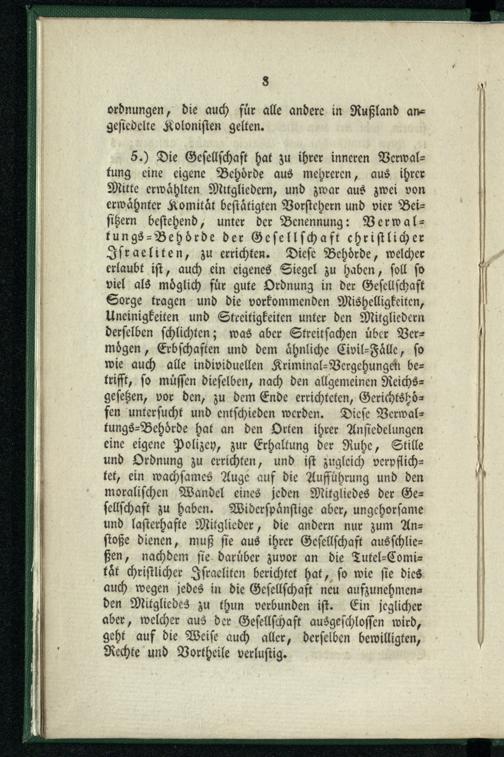 Von der Gesellschaft christlicher Israeliten und der für dieselbe errichteten Tutel-Comität. Befehl an Einen Dirigirenden Senat.