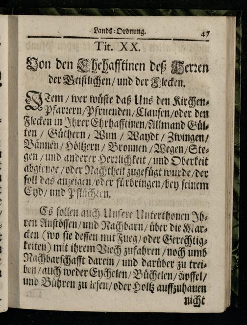 Tit. XX. Von den Thehafftinen des Herren der Geistlichen/ und der Flecken.