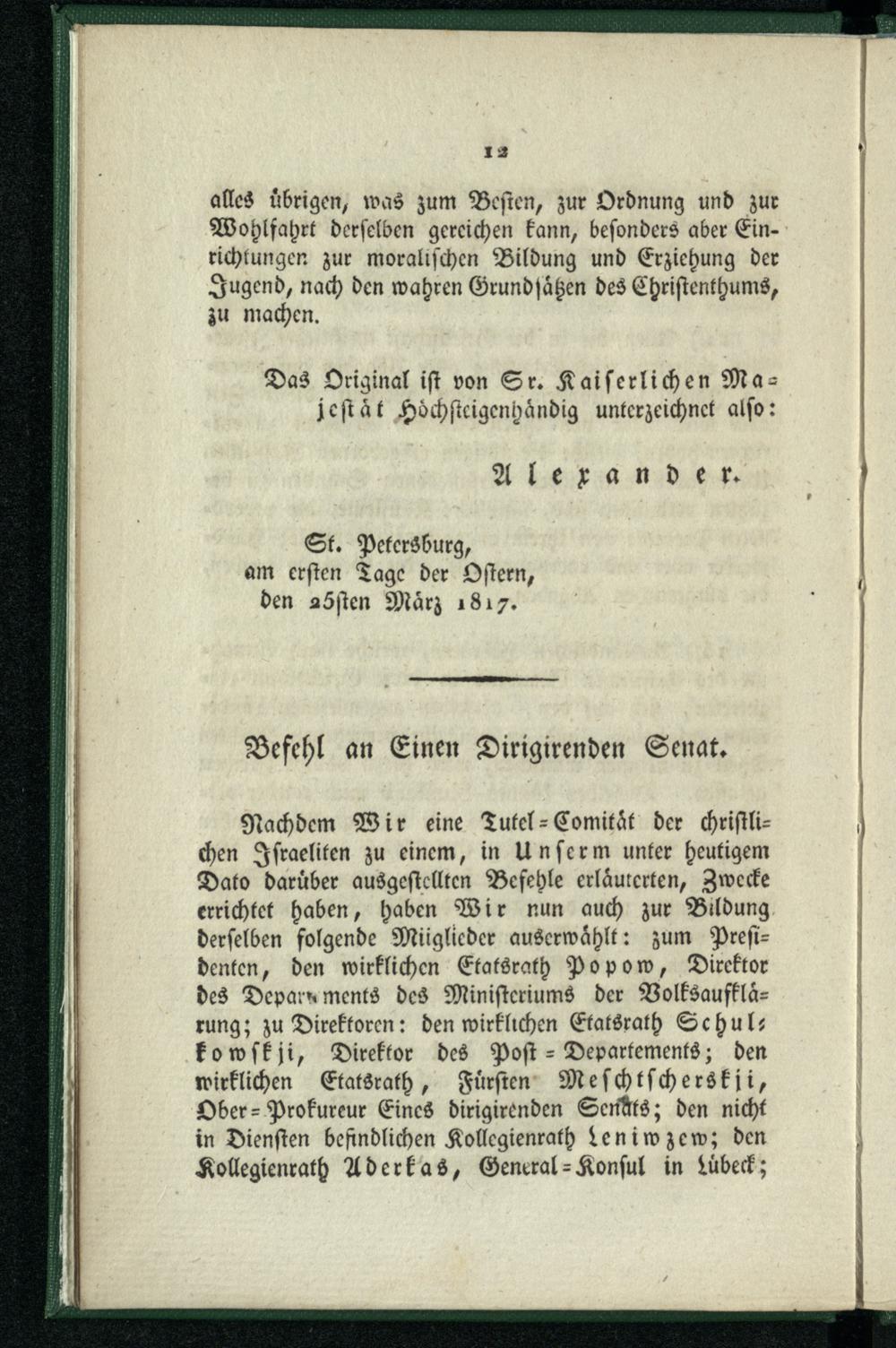 Befehl an Einen Dirigirenden Senat.