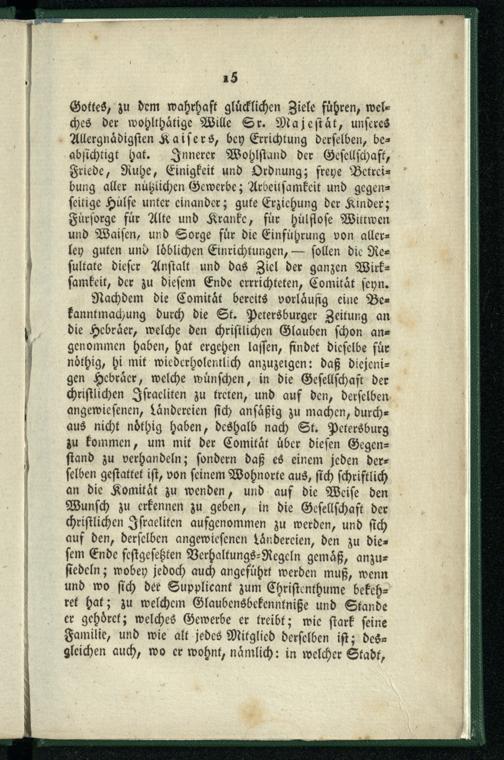 Von der Gesellschaft christlicher Israeliten und der für dieselbe errichteten Tutel-Comität. Befehl an Einen Dirigirenden Senat.