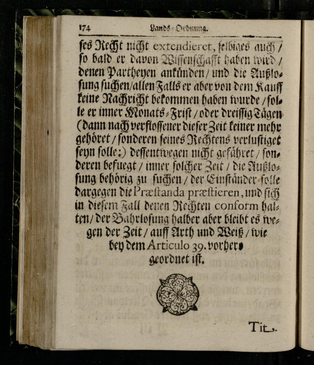 Fürstliche Hohenzollerische Lands-Ordnung : Erneuert und verbesseret/ Anno 1698. / [Von Gottes Gnaden/ Wir Friderich Wilhelm/ Fürst zu Hohenzolleren .̤]