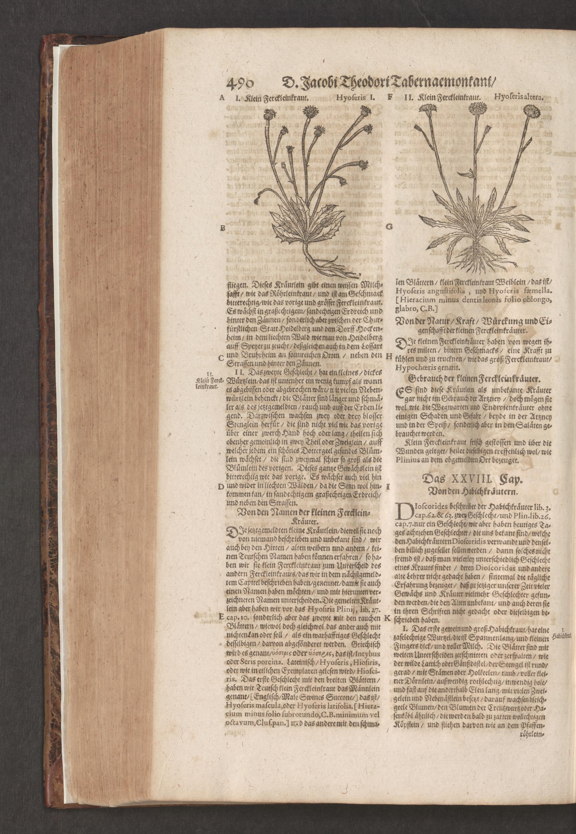 D. Jacobi Theodori Tabernaemontani, Neu vollkommen Kräuter-Buch : Darinnen Uber 3000. Kräuter/ mit schönen und kunstlichen Figuren/ auch deren Underscheid und Würckung/ samt ihren Namen in mancherley Sprachen/ beschrieben: Desgleichen auch/ wie dieselbige in allerhand Kranckheiten/ beyde der Menschen und des Viehs/ sollen angewendet und gebraucht werden/ angezeigt wird. Erstlichen durch Casparum Bauhinum D. und Profess. Basil. mit vielen neuen Figuren/ nutzlichen Artzneyen/ und anderem/ mit sonderem Fleis gebesseret/ Zum Andern Durch Hieronymum Bauhinum D. und Profess. Basil. mit sehr nutzlichen Marginalien, Synonimis, neuen Registeren und anderem vermehrt