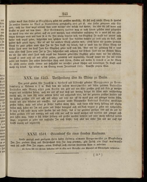 Urkunden aus der Regierungszeit Churfürst Joachims des Ersten von 1500 bis 1535.