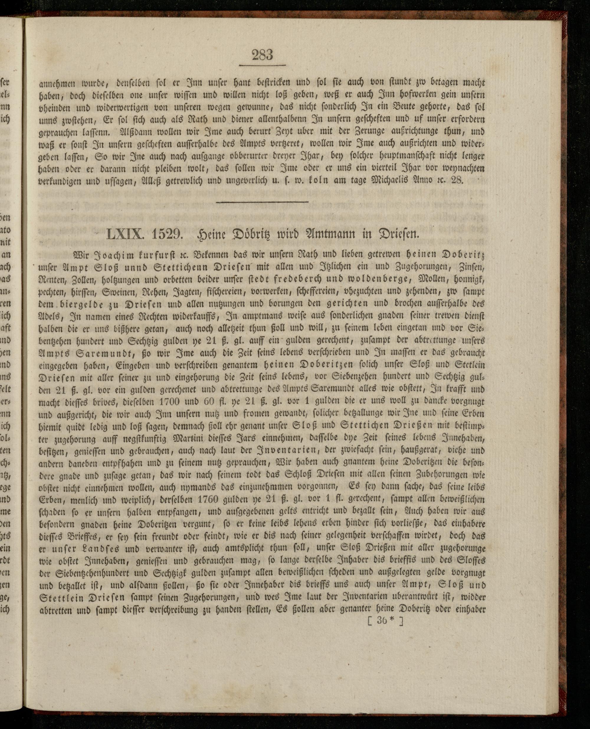 Urkunden aus der Regierungszeit Churfürst Joachims des Ersten von 1500 bis 1535.