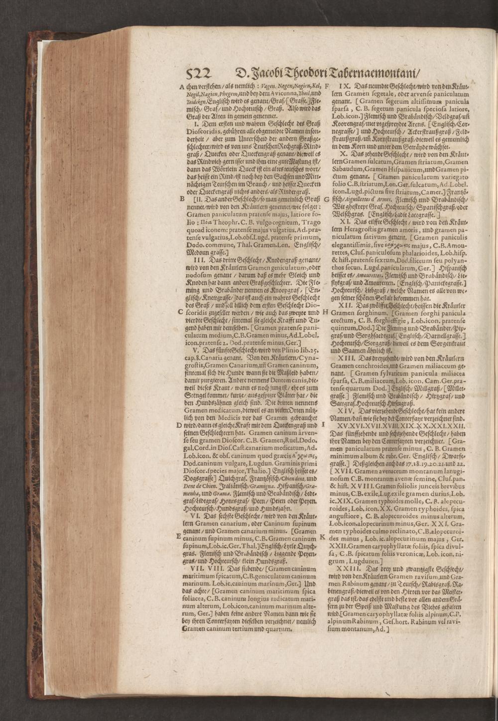 D. Jacobi Theodori Tabernaemontani, Neu vollkommen Kräuter-Buch : Darinnen Uber 3000. Kräuter/ mit schönen und kunstlichen Figuren/ auch deren Underscheid und Würckung/ samt ihren Namen in mancherley Sprachen/ beschrieben: Desgleichen auch/ wie dieselbige in allerhand Kranckheiten/ beyde der Menschen und des Viehs/ sollen angewendet und gebraucht werden/ angezeigt wird. Erstlichen durch Casparum Bauhinum D. und Profess. Basil. mit vielen neuen Figuren/ nutzlichen Artzneyen/ und anderem/ mit sonderem Fleis gebesseret/ Zum Andern Durch Hieronymum Bauhinum D. und Profess. Basil. mit sehr nutzlichen Marginalien, Synonimis, neuen Registeren und anderem vermehrt