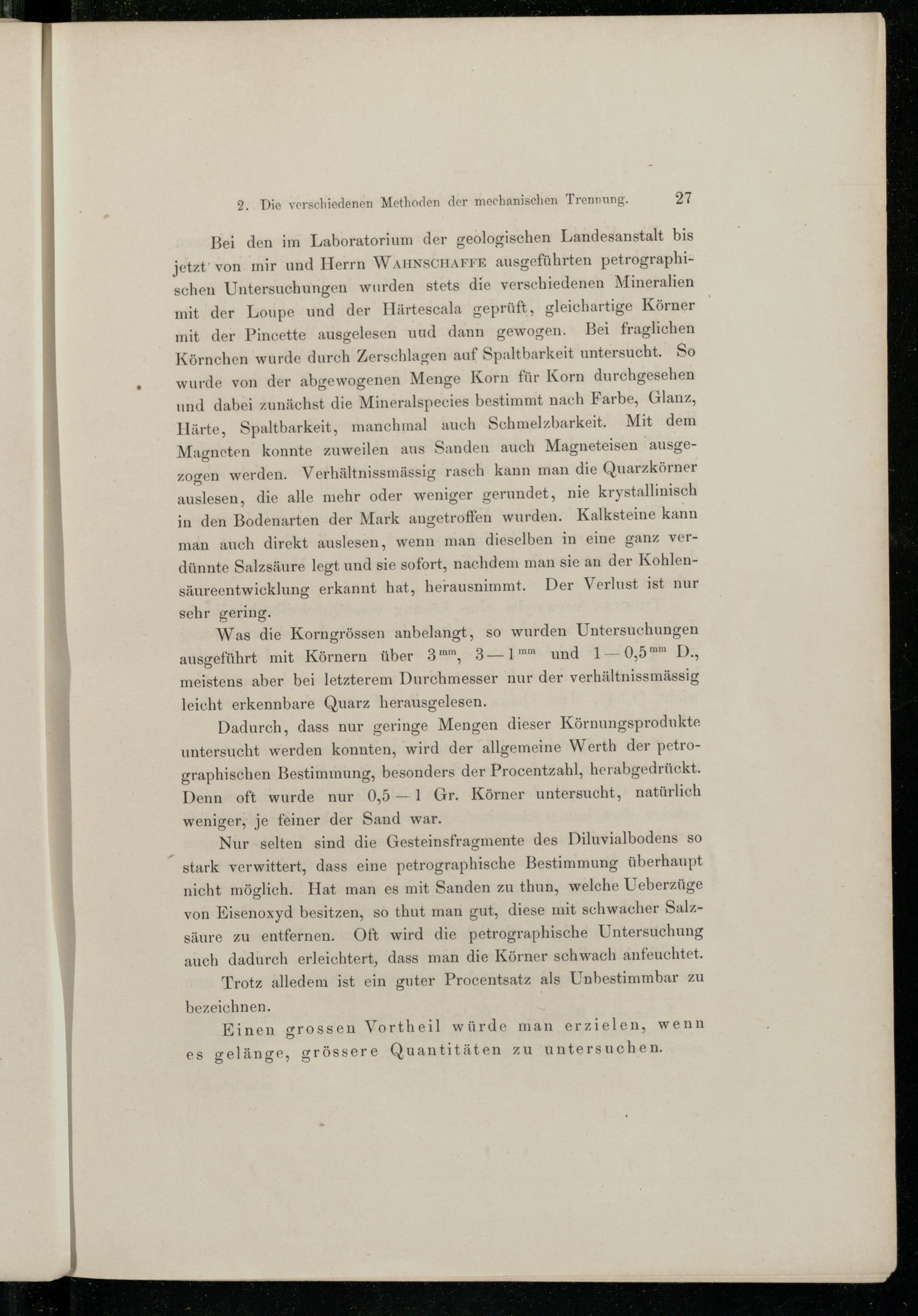 C. Die petrographische Untersuchung der gröberen Gemengtheile.