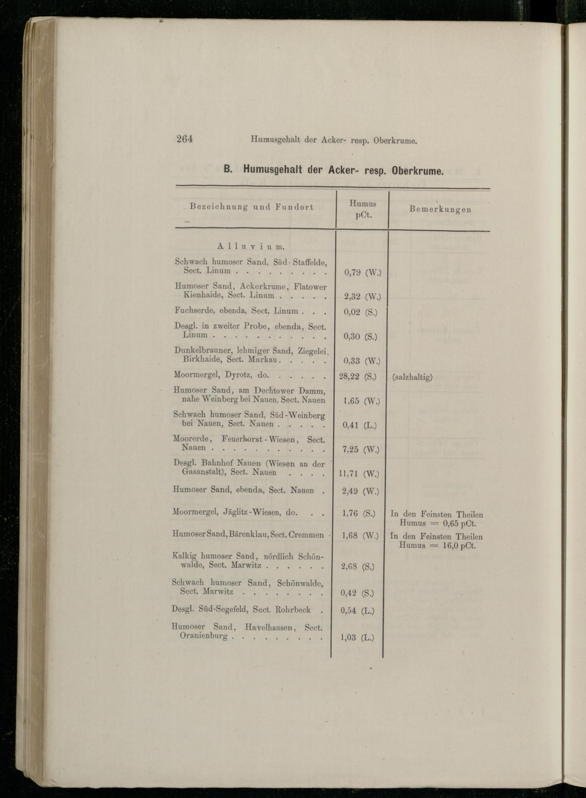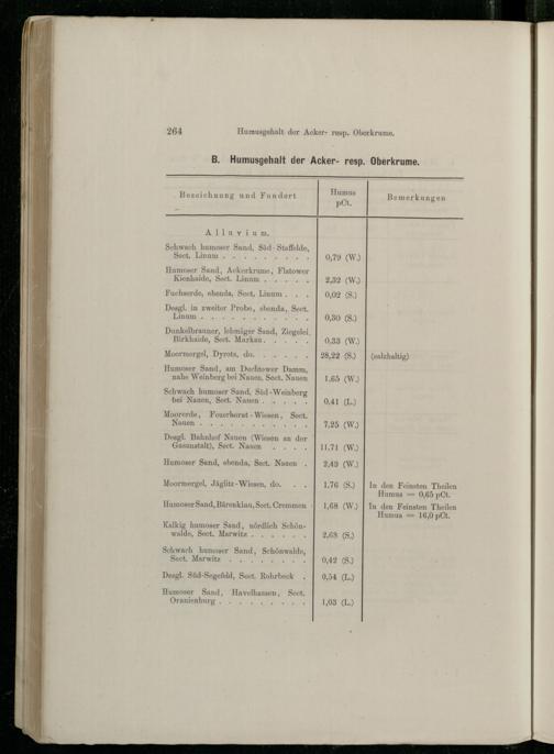 B. Humusgehalt der Acker- resp. Oberkrume.