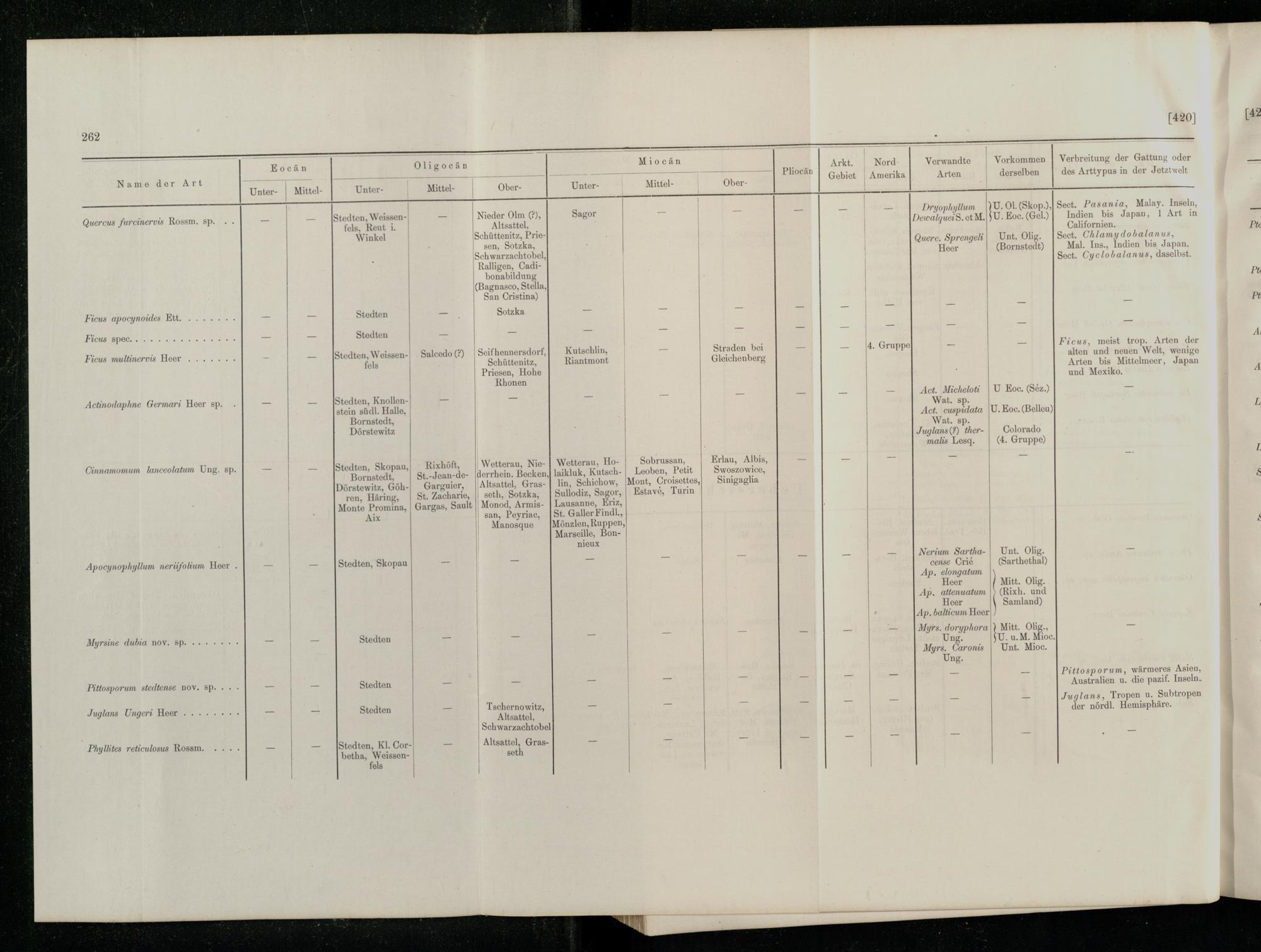 Uebersicht der in dieser Arbeit aufgeführten Fundorte von Tertiärpflanzen.