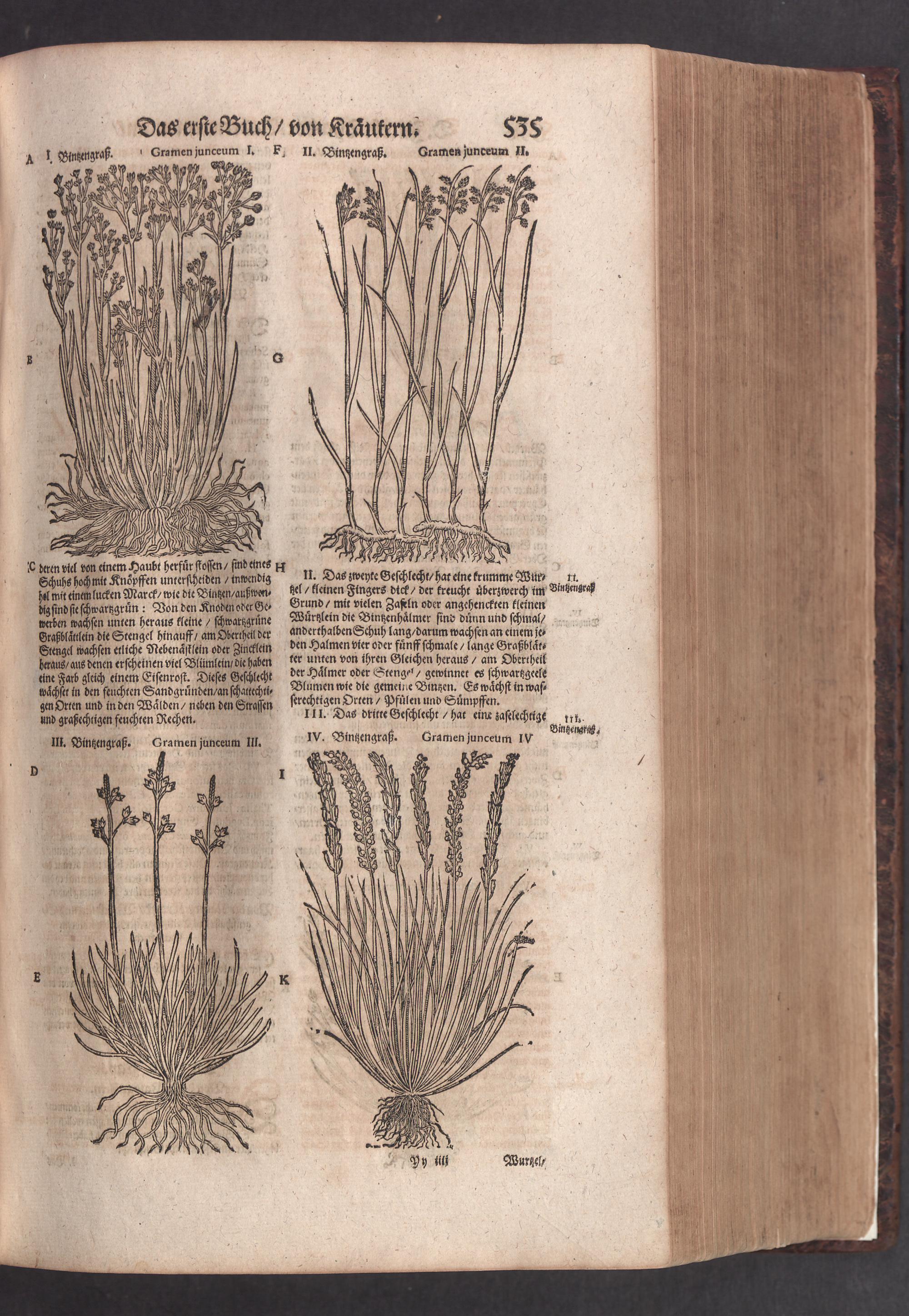 D. Jacobi Theodori Tabernaemontani, Neu vollkommen Kräuter-Buch : Darinnen Uber 3000. Kräuter/ mit schönen und kunstlichen Figuren/ auch deren Underscheid und Würckung/ samt ihren Namen in mancherley Sprachen/ beschrieben: Desgleichen auch/ wie dieselbige in allerhand Kranckheiten/ beyde der Menschen und des Viehs/ sollen angewendet und gebraucht werden/ angezeigt wird. Erstlichen durch Casparum Bauhinum D. und Profess. Basil. mit vielen neuen Figuren/ nutzlichen Artzneyen/ und anderem/ mit sonderem Fleis gebesseret/ Zum Andern Durch Hieronymum Bauhinum D. und Profess. Basil. mit sehr nutzlichen Marginalien, Synonimis, neuen Registeren und anderem vermehrt