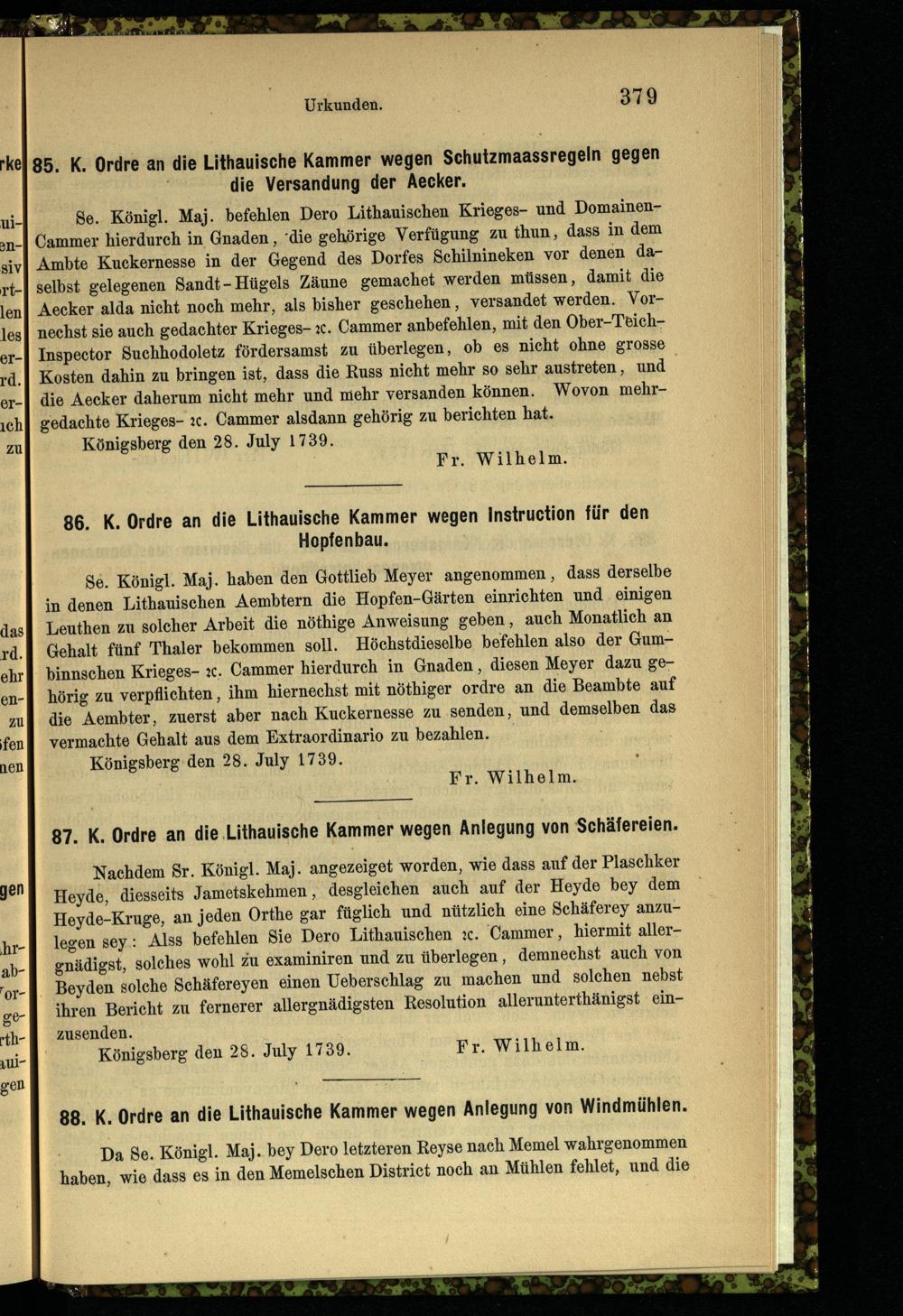 87. K. Ordre an die Lithauische Kammer wegen Anlegung von Schäfereien.