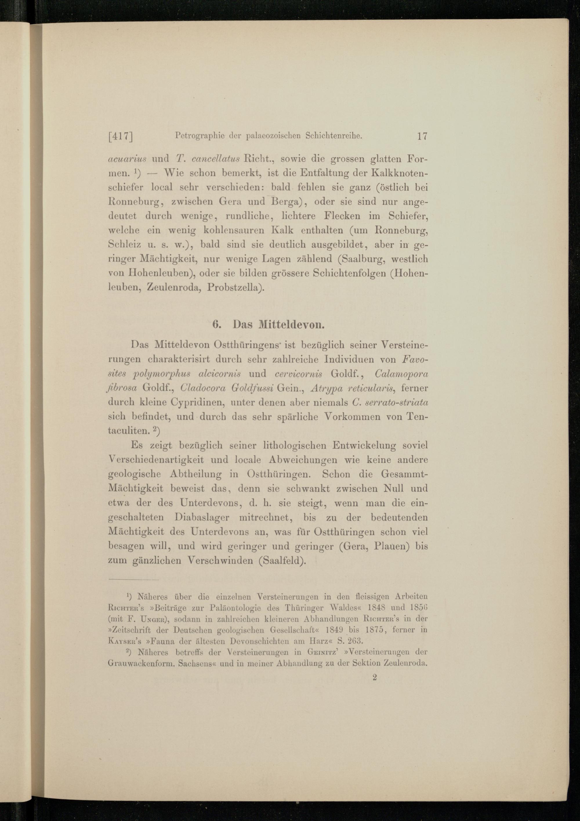 I. Petrographie der palaeozoischen Schichtenreihe (bis zum Kulm incl.).