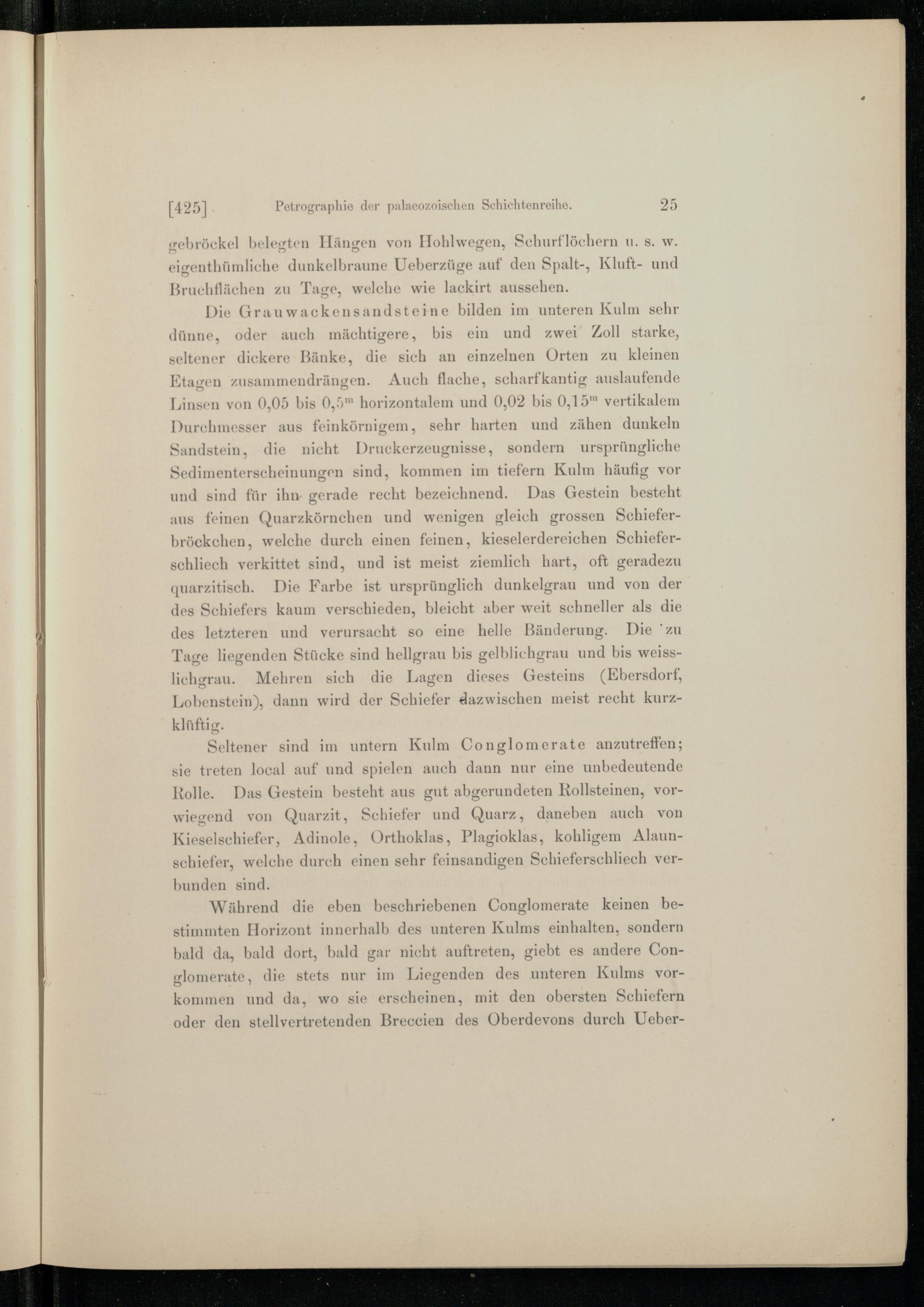 I. Petrographie der palaeozoischen Schichtenreihe (bis zum Kulm incl.).