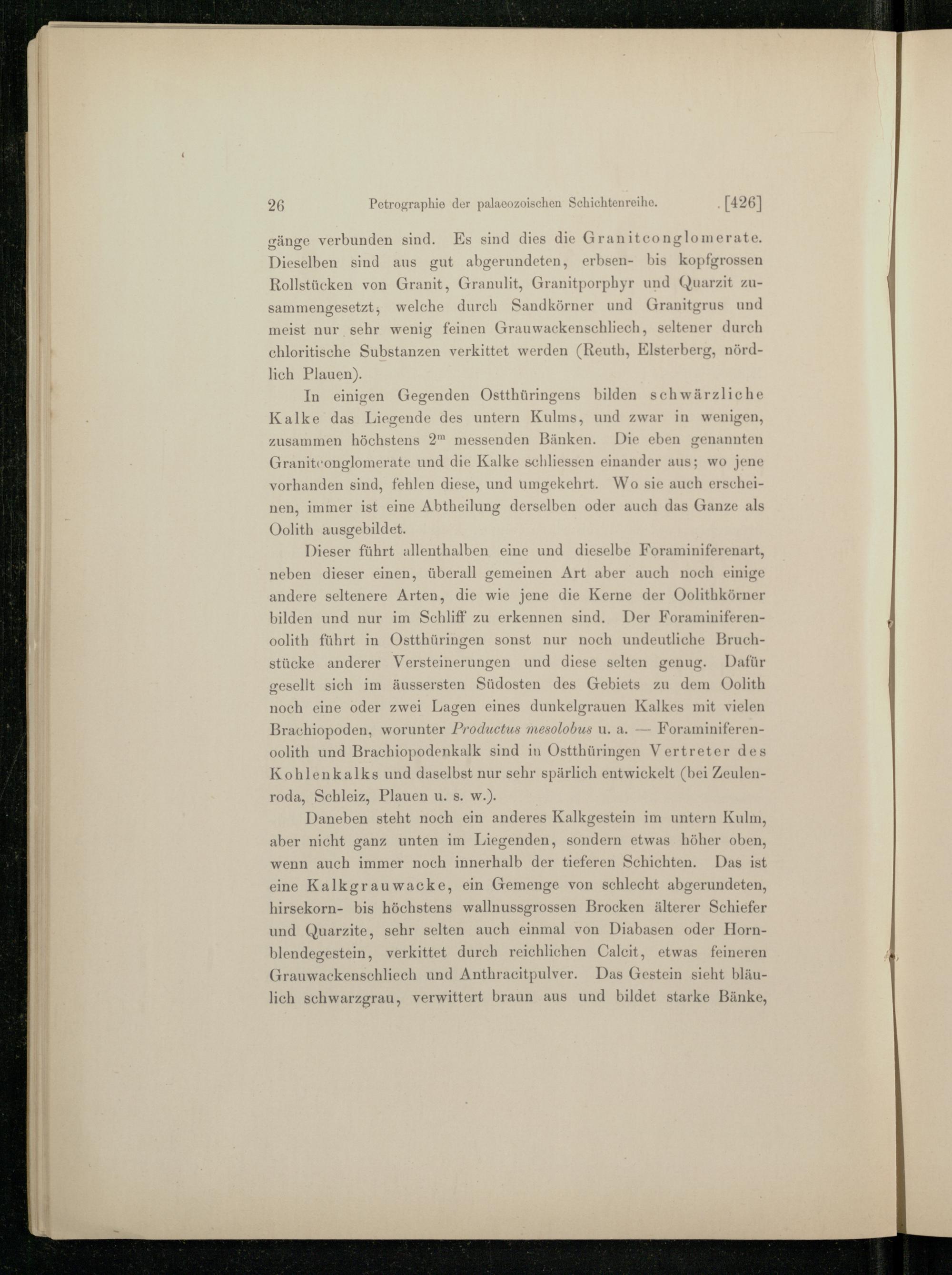 I. Petrographie der palaeozoischen Schichtenreihe (bis zum Kulm incl.).