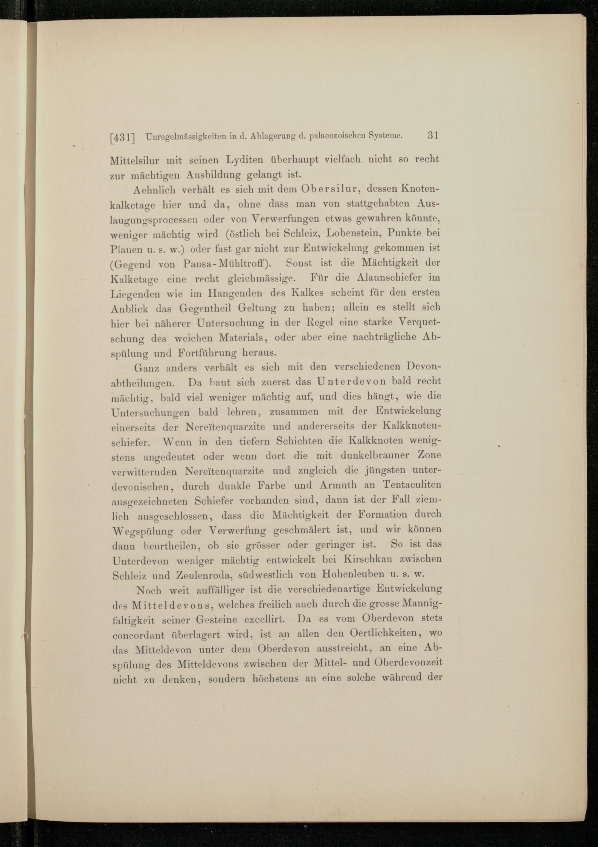 II. Unregelmässigkeiten in der Ablagerung der palaeozoischen Systeme.
