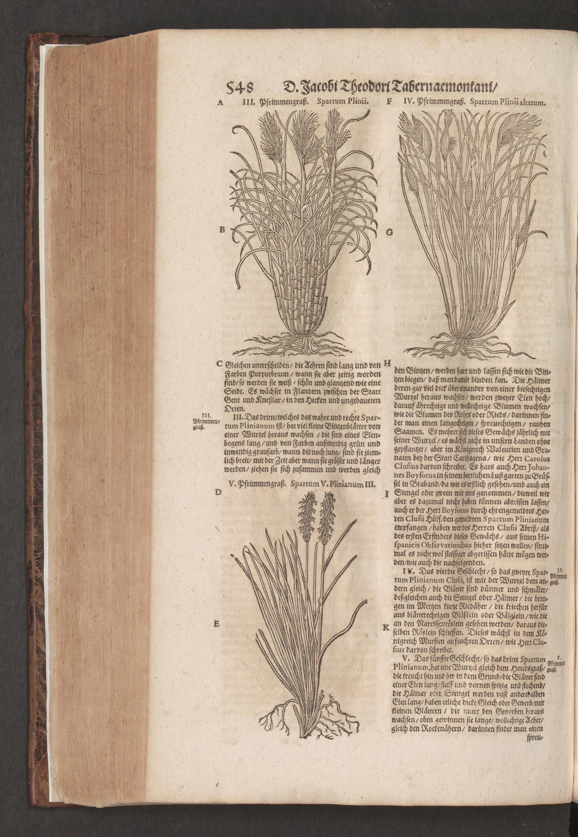 D. Jacobi Theodori Tabernaemontani, Neu vollkommen Kräuter-Buch : Darinnen Uber 3000. Kräuter/ mit schönen und kunstlichen Figuren/ auch deren Underscheid und Würckung/ samt ihren Namen in mancherley Sprachen/ beschrieben: Desgleichen auch/ wie dieselbige in allerhand Kranckheiten/ beyde der Menschen und des Viehs/ sollen angewendet und gebraucht werden/ angezeigt wird. Erstlichen durch Casparum Bauhinum D. und Profess. Basil. mit vielen neuen Figuren/ nutzlichen Artzneyen/ und anderem/ mit sonderem Fleis gebesseret/ Zum Andern Durch Hieronymum Bauhinum D. und Profess. Basil. mit sehr nutzlichen Marginalien, Synonimis, neuen Registeren und anderem vermehrt