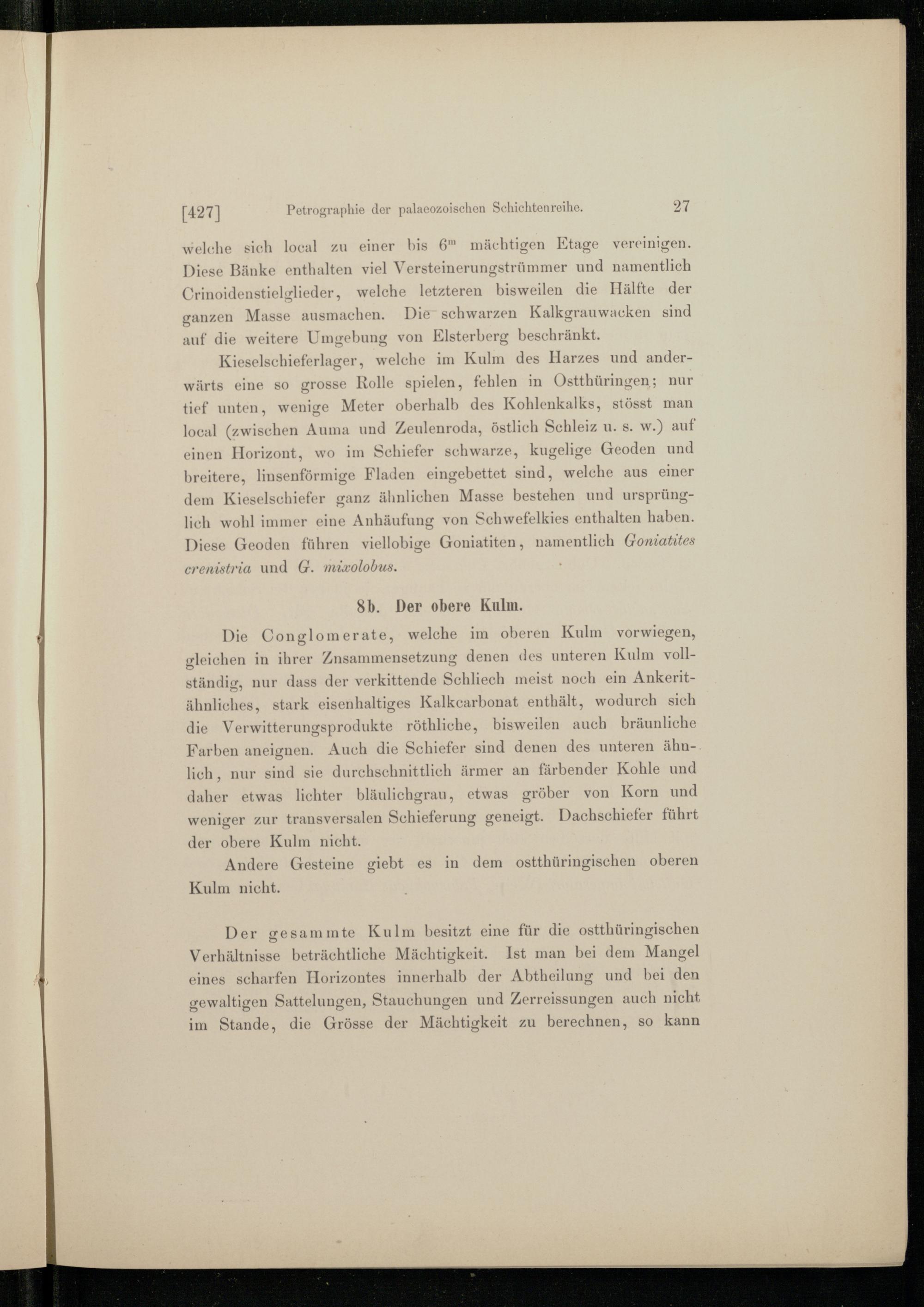 I. Petrographie der palaeozoischen Schichtenreihe (bis zum Kulm incl.).