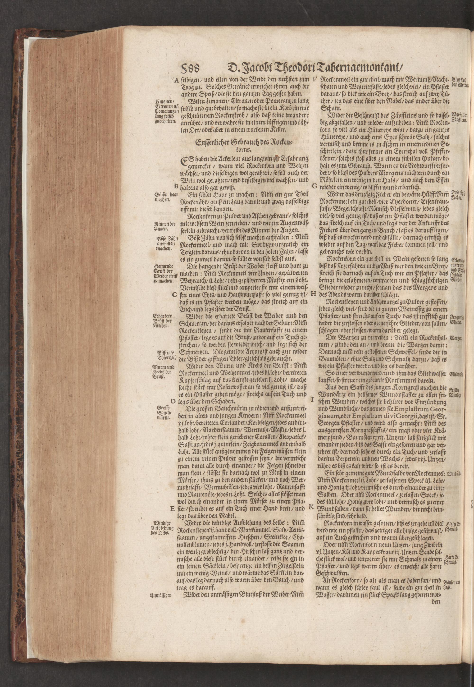 D. Jacobi Theodori Tabernaemontani, Neu vollkommen Kräuter-Buch : Darinnen Uber 3000. Kräuter/ mit schönen und kunstlichen Figuren/ auch deren Underscheid und Würckung/ samt ihren Namen in mancherley Sprachen/ beschrieben: Desgleichen auch/ wie dieselbige in allerhand Kranckheiten/ beyde der Menschen und des Viehs/ sollen angewendet und gebraucht werden/ angezeigt wird. Erstlichen durch Casparum Bauhinum D. und Profess. Basil. mit vielen neuen Figuren/ nutzlichen Artzneyen/ und anderem/ mit sonderem Fleis gebesseret/ Zum Andern Durch Hieronymum Bauhinum D. und Profess. Basil. mit sehr nutzlichen Marginalien, Synonimis, neuen Registeren und anderem vermehrt