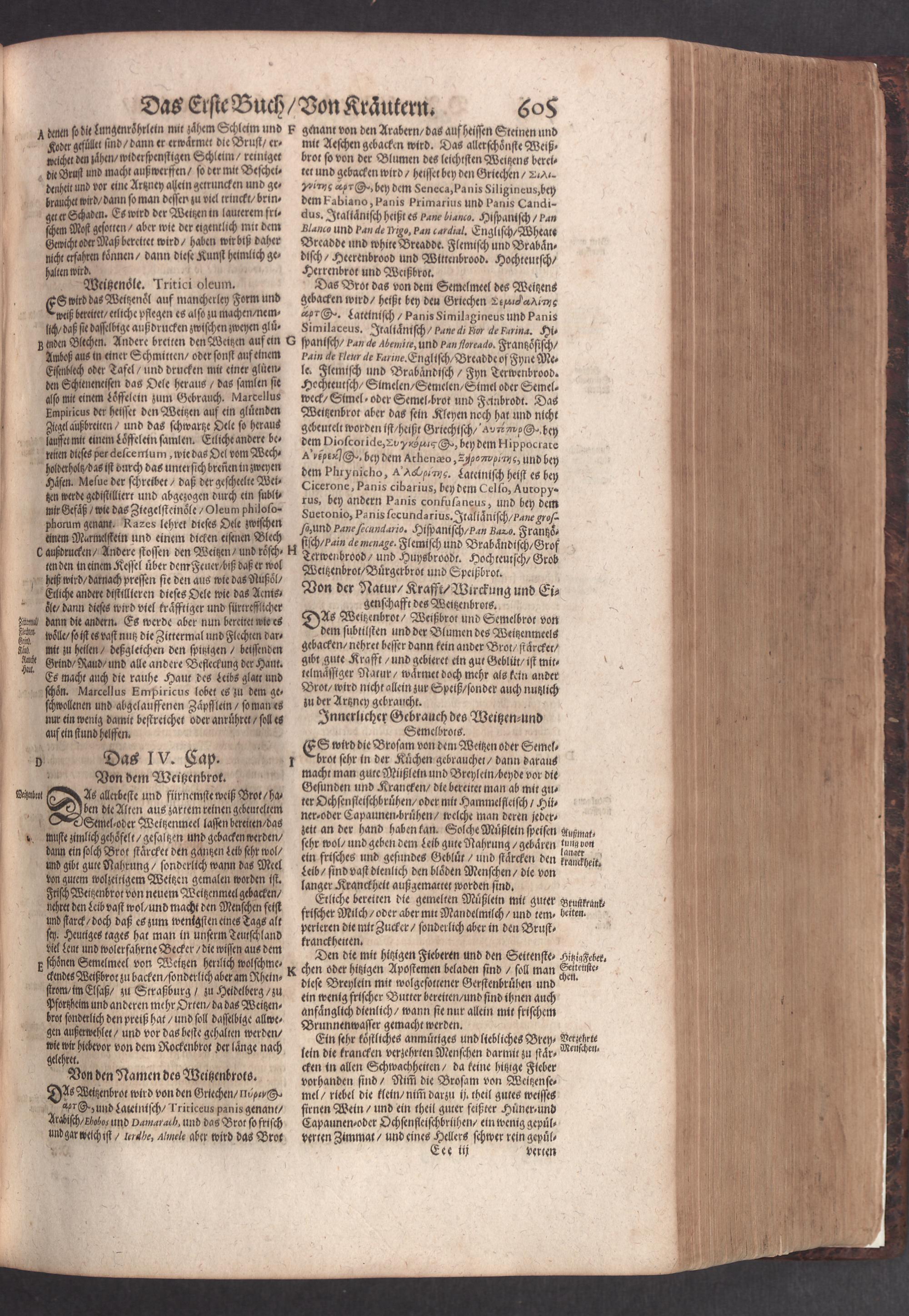 D. Jacobi Theodori Tabernaemontani, Neu vollkommen Kräuter-Buch : Darinnen Uber 3000. Kräuter/ mit schönen und kunstlichen Figuren/ auch deren Underscheid und Würckung/ samt ihren Namen in mancherley Sprachen/ beschrieben: Desgleichen auch/ wie dieselbige in allerhand Kranckheiten/ beyde der Menschen und des Viehs/ sollen angewendet und gebraucht werden/ angezeigt wird. Erstlichen durch Casparum Bauhinum D. und Profess. Basil. mit vielen neuen Figuren/ nutzlichen Artzneyen/ und anderem/ mit sonderem Fleis gebesseret/ Zum Andern Durch Hieronymum Bauhinum D. und Profess. Basil. mit sehr nutzlichen Marginalien, Synonimis, neuen Registeren und anderem vermehrt