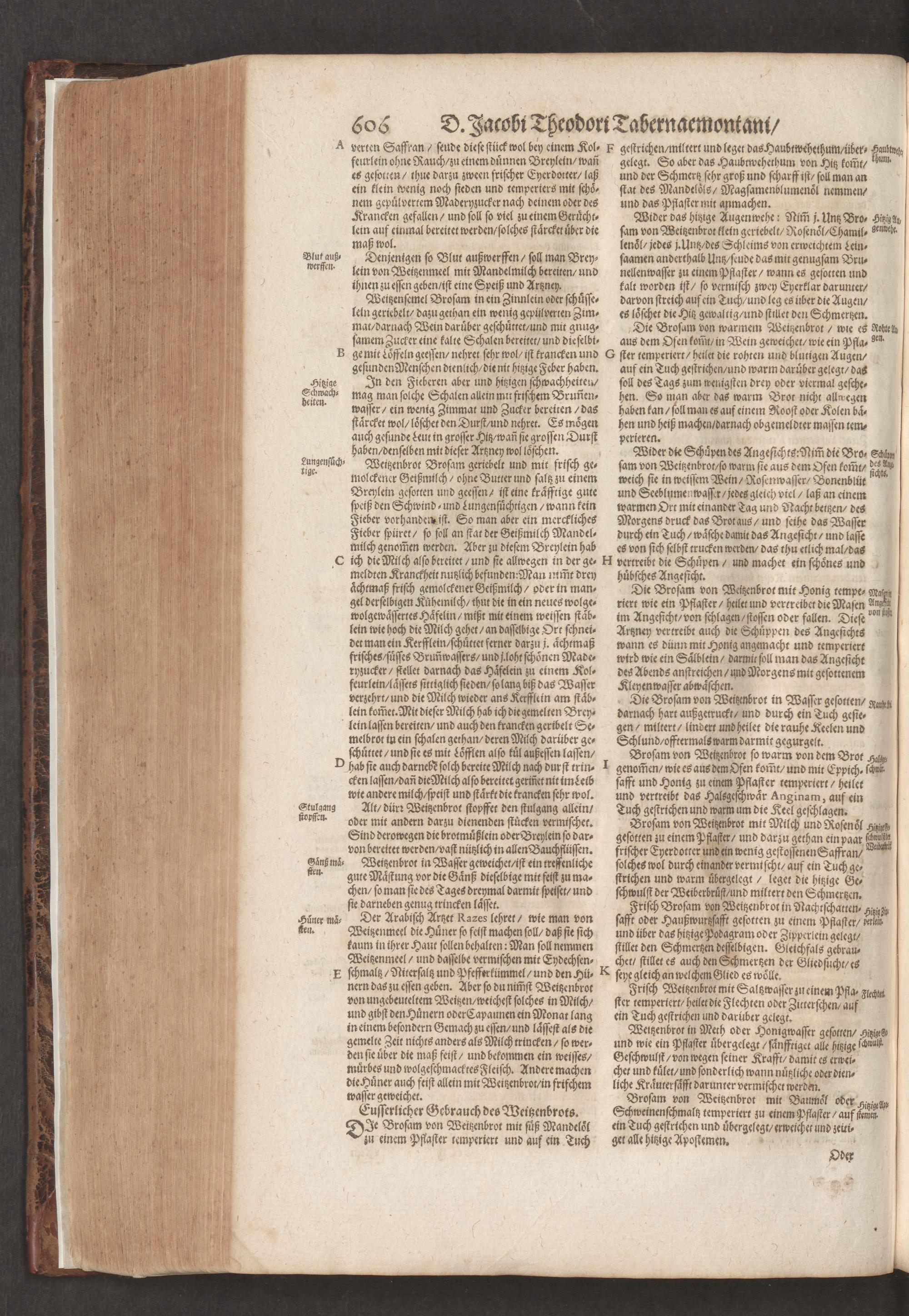 D. Jacobi Theodori Tabernaemontani, Neu vollkommen Kräuter-Buch : Darinnen Uber 3000. Kräuter/ mit schönen und kunstlichen Figuren/ auch deren Underscheid und Würckung/ samt ihren Namen in mancherley Sprachen/ beschrieben: Desgleichen auch/ wie dieselbige in allerhand Kranckheiten/ beyde der Menschen und des Viehs/ sollen angewendet und gebraucht werden/ angezeigt wird. Erstlichen durch Casparum Bauhinum D. und Profess. Basil. mit vielen neuen Figuren/ nutzlichen Artzneyen/ und anderem/ mit sonderem Fleis gebesseret/ Zum Andern Durch Hieronymum Bauhinum D. und Profess. Basil. mit sehr nutzlichen Marginalien, Synonimis, neuen Registeren und anderem vermehrt