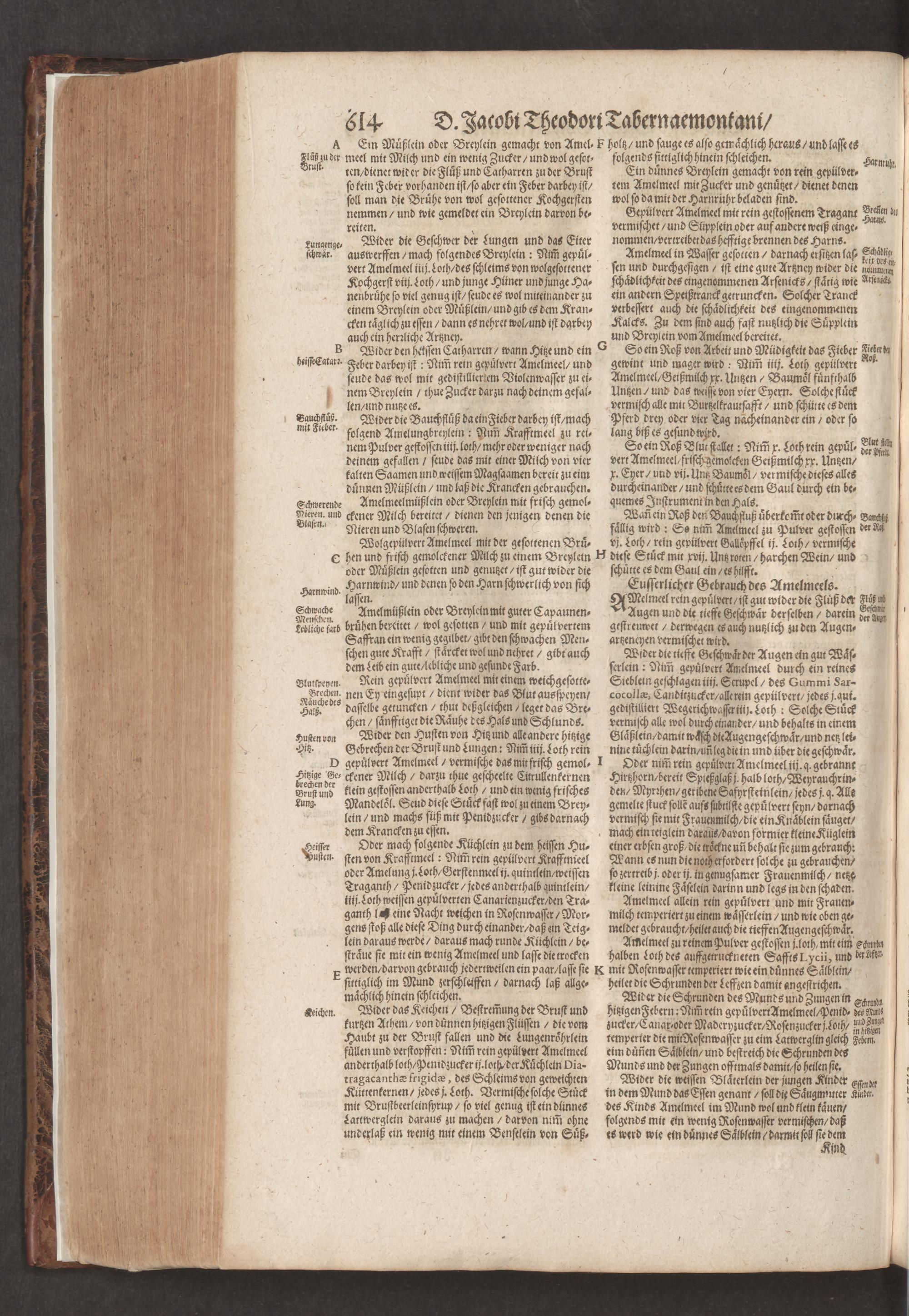 D. Jacobi Theodori Tabernaemontani, Neu vollkommen Kräuter-Buch : Darinnen Uber 3000. Kräuter/ mit schönen und kunstlichen Figuren/ auch deren Underscheid und Würckung/ samt ihren Namen in mancherley Sprachen/ beschrieben: Desgleichen auch/ wie dieselbige in allerhand Kranckheiten/ beyde der Menschen und des Viehs/ sollen angewendet und gebraucht werden/ angezeigt wird. Erstlichen durch Casparum Bauhinum D. und Profess. Basil. mit vielen neuen Figuren/ nutzlichen Artzneyen/ und anderem/ mit sonderem Fleis gebesseret/ Zum Andern Durch Hieronymum Bauhinum D. und Profess. Basil. mit sehr nutzlichen Marginalien, Synonimis, neuen Registeren und anderem vermehrt