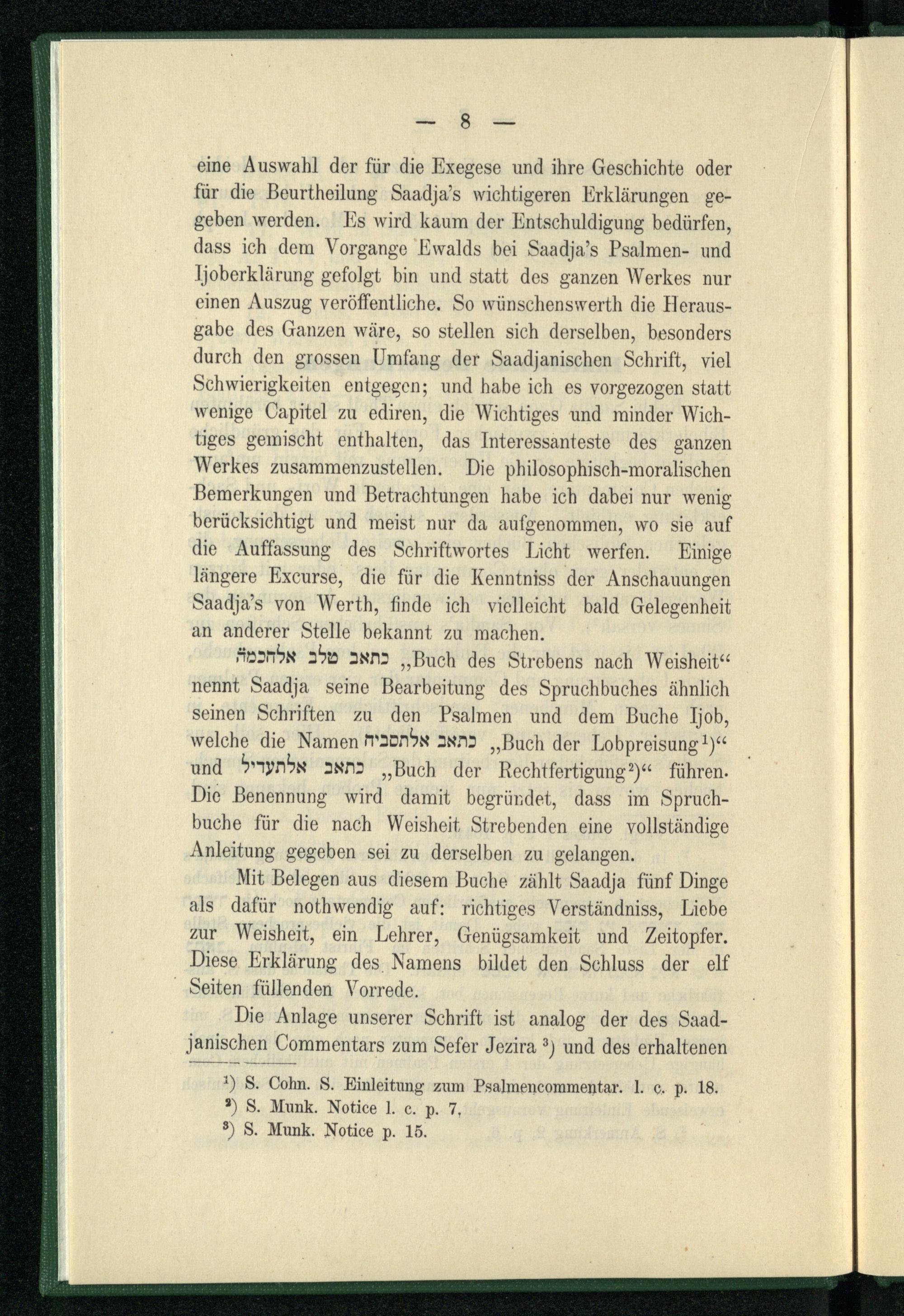 Das Spruchbuch nach Saadja : ein Auszug aus Saadja's Kitab Ṭalab al-ḥikmah, Cap. 1-9 : als Beitrag zur Geschichte der Bibelauslegung ; Inaugural-Dissertation ... / eingereicht von Jonas Bondi
