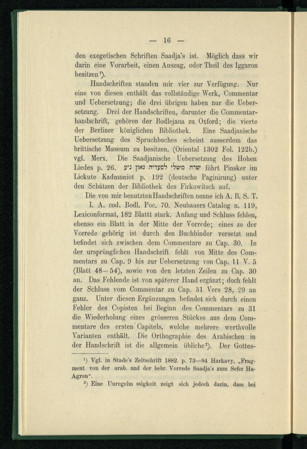 Das Spruchbuch nach Saadja : ein Auszug aus Saadja's Kitab Ṭalab al-ḥikmah, Cap. 1-9 : als Beitrag zur Geschichte der Bibelauslegung ; Inaugural-Dissertation ... / eingereicht von Jonas Bondi