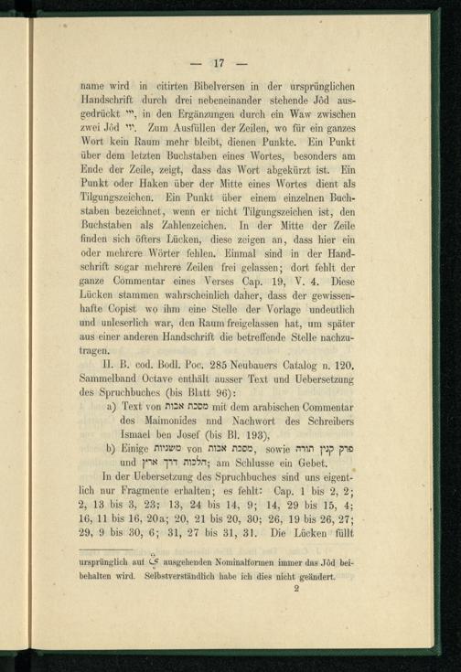 Das Spruchbuch nach Saadja : ein Auszug aus Saadja's Kitab Ṭalab al-ḥikmah, Cap. 1-9 : als Beitrag zur Geschichte der Bibelauslegung ; Inaugural-Dissertation ... / eingereicht von Jonas Bondi