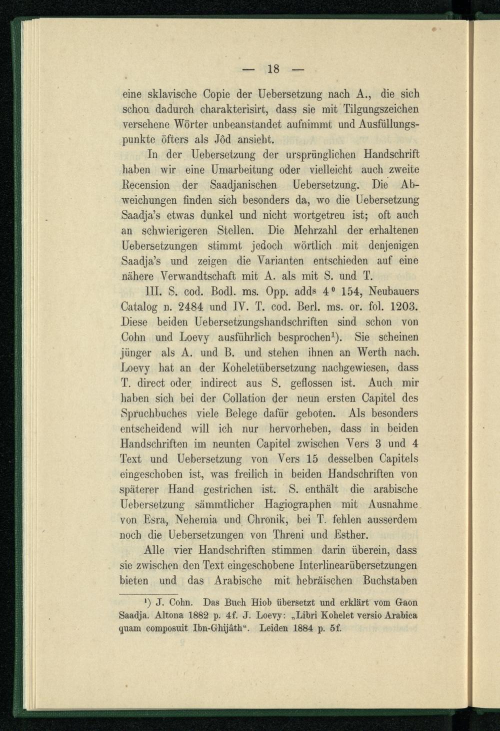 Das Spruchbuch nach Saadja : ein Auszug aus Saadja's Kitab Ṭalab al-ḥikmah, Cap. 1-9 : als Beitrag zur Geschichte der Bibelauslegung ; Inaugural-Dissertation ... / eingereicht von Jonas Bondi