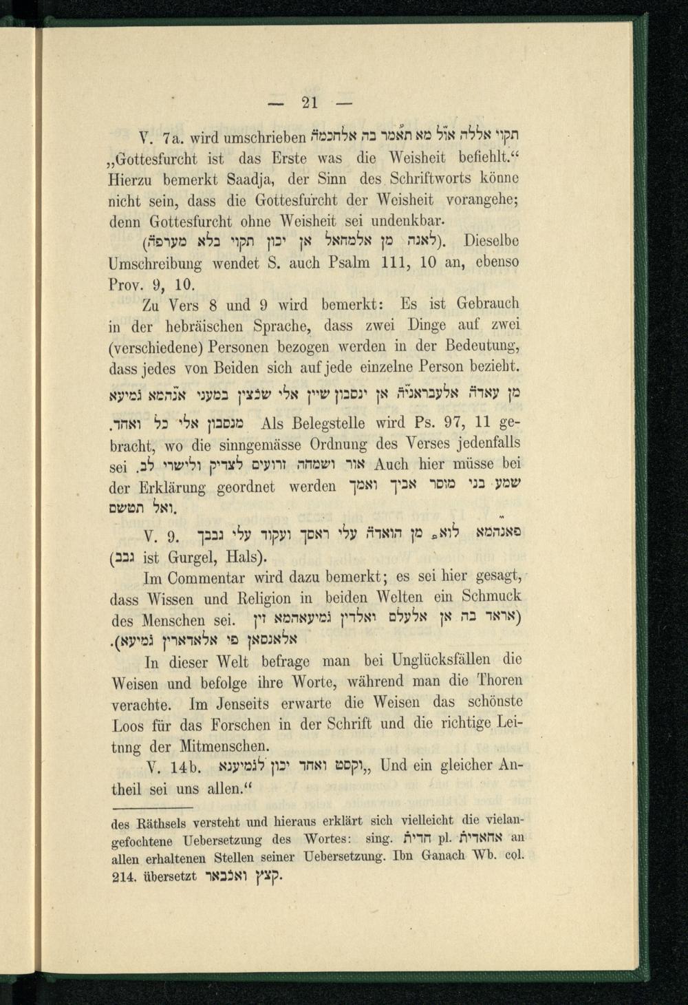 Das Spruchbuch nach Saadja : ein Auszug aus Saadja's Kitab Ṭalab al-ḥikmah, Cap. 1-9 : als Beitrag zur Geschichte der Bibelauslegung ; Inaugural-Dissertation ... / eingereicht von Jonas Bondi