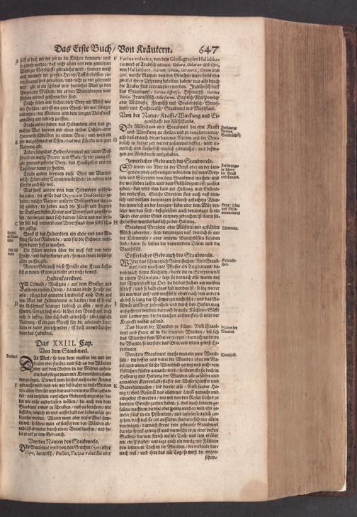 D. Jacobi Theodori Tabernaemontani, Neu vollkommen Kräuter-Buch : Darinnen Uber 3000. Kräuter/ mit schönen und kunstlichen Figuren/ auch deren Underscheid und Würckung/ samt ihren Namen in mancherley Sprachen/ beschrieben: Desgleichen auch/ wie dieselbige in allerhand Kranckheiten/ beyde der Menschen und des Viehs/ sollen angewendet und gebraucht werden/ angezeigt wird. Erstlichen durch Casparum Bauhinum D. und Profess. Basil. mit vielen neuen Figuren/ nutzlichen Artzneyen/ und anderem/ mit sonderem Fleis gebesseret/ Zum Andern Durch Hieronymum Bauhinum D. und Profess. Basil. mit sehr nutzlichen Marginalien, Synonimis, neuen Registeren und anderem vermehrt