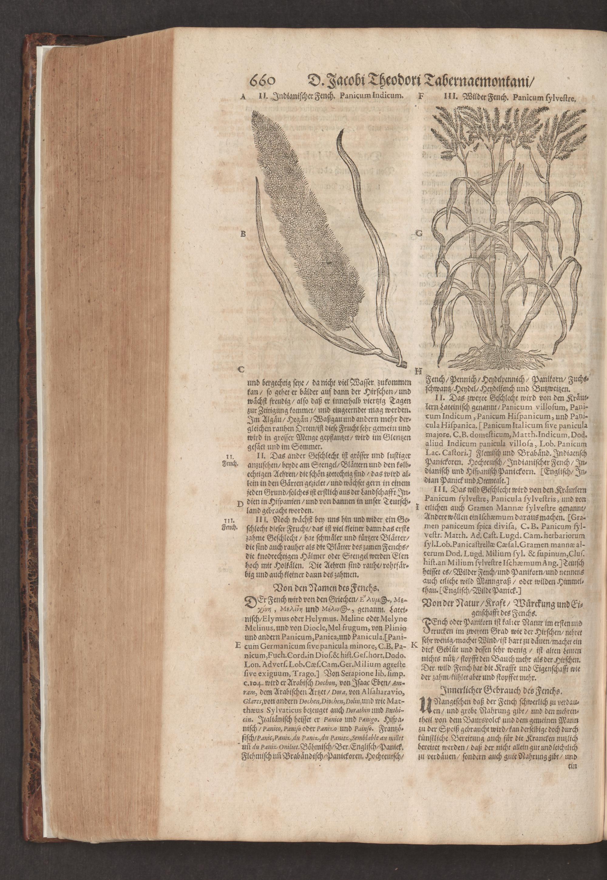 D. Jacobi Theodori Tabernaemontani, Neu vollkommen Kräuter-Buch : Darinnen Uber 3000. Kräuter/ mit schönen und kunstlichen Figuren/ auch deren Underscheid und Würckung/ samt ihren Namen in mancherley Sprachen/ beschrieben: Desgleichen auch/ wie dieselbige in allerhand Kranckheiten/ beyde der Menschen und des Viehs/ sollen angewendet und gebraucht werden/ angezeigt wird. Erstlichen durch Casparum Bauhinum D. und Profess. Basil. mit vielen neuen Figuren/ nutzlichen Artzneyen/ und anderem/ mit sonderem Fleis gebesseret/ Zum Andern Durch Hieronymum Bauhinum D. und Profess. Basil. mit sehr nutzlichen Marginalien, Synonimis, neuen Registeren und anderem vermehrt