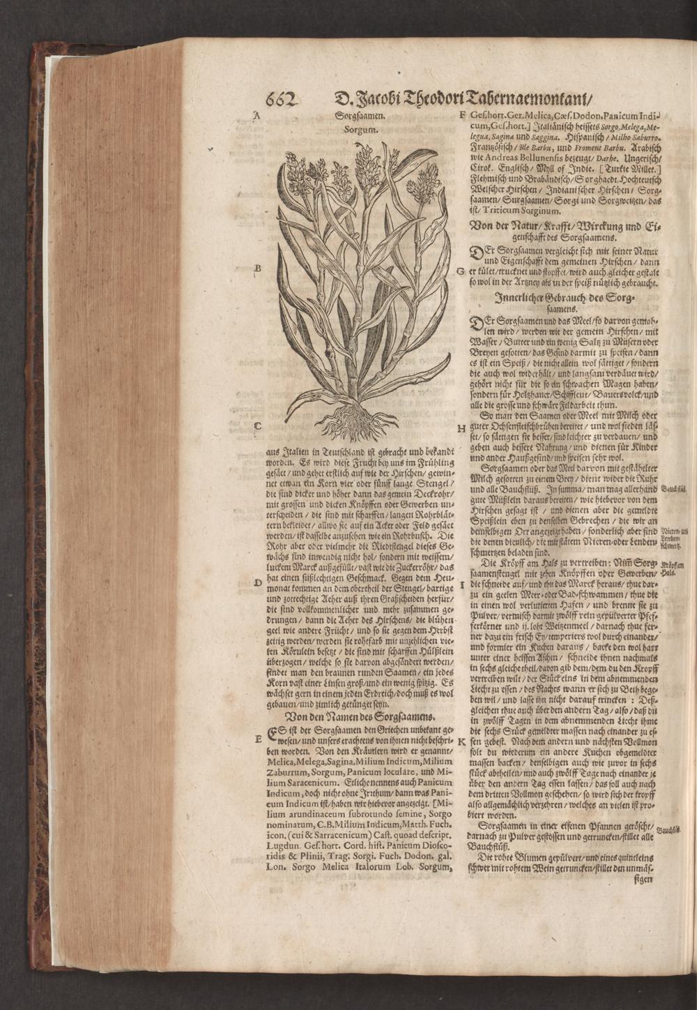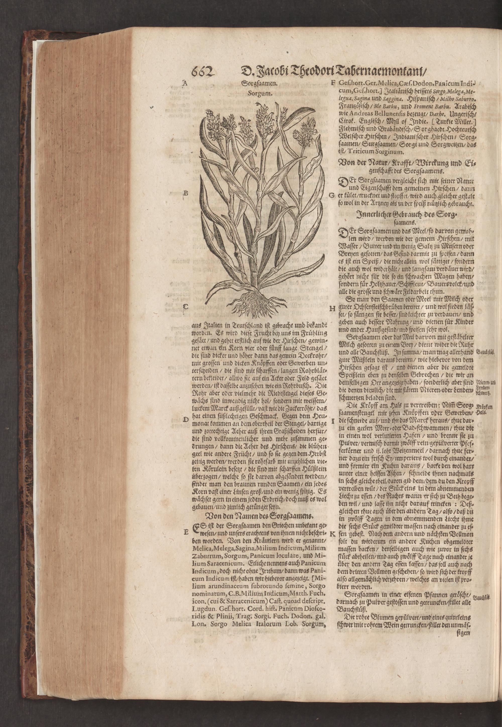 D. Jacobi Theodori Tabernaemontani, Neu vollkommen Kräuter-Buch : Darinnen Uber 3000. Kräuter/ mit schönen und kunstlichen Figuren/ auch deren Underscheid und Würckung/ samt ihren Namen in mancherley Sprachen/ beschrieben: Desgleichen auch/ wie dieselbige in allerhand Kranckheiten/ beyde der Menschen und des Viehs/ sollen angewendet und gebraucht werden/ angezeigt wird. Erstlichen durch Casparum Bauhinum D. und Profess. Basil. mit vielen neuen Figuren/ nutzlichen Artzneyen/ und anderem/ mit sonderem Fleis gebesseret/ Zum Andern Durch Hieronymum Bauhinum D. und Profess. Basil. mit sehr nutzlichen Marginalien, Synonimis, neuen Registeren und anderem vermehrt