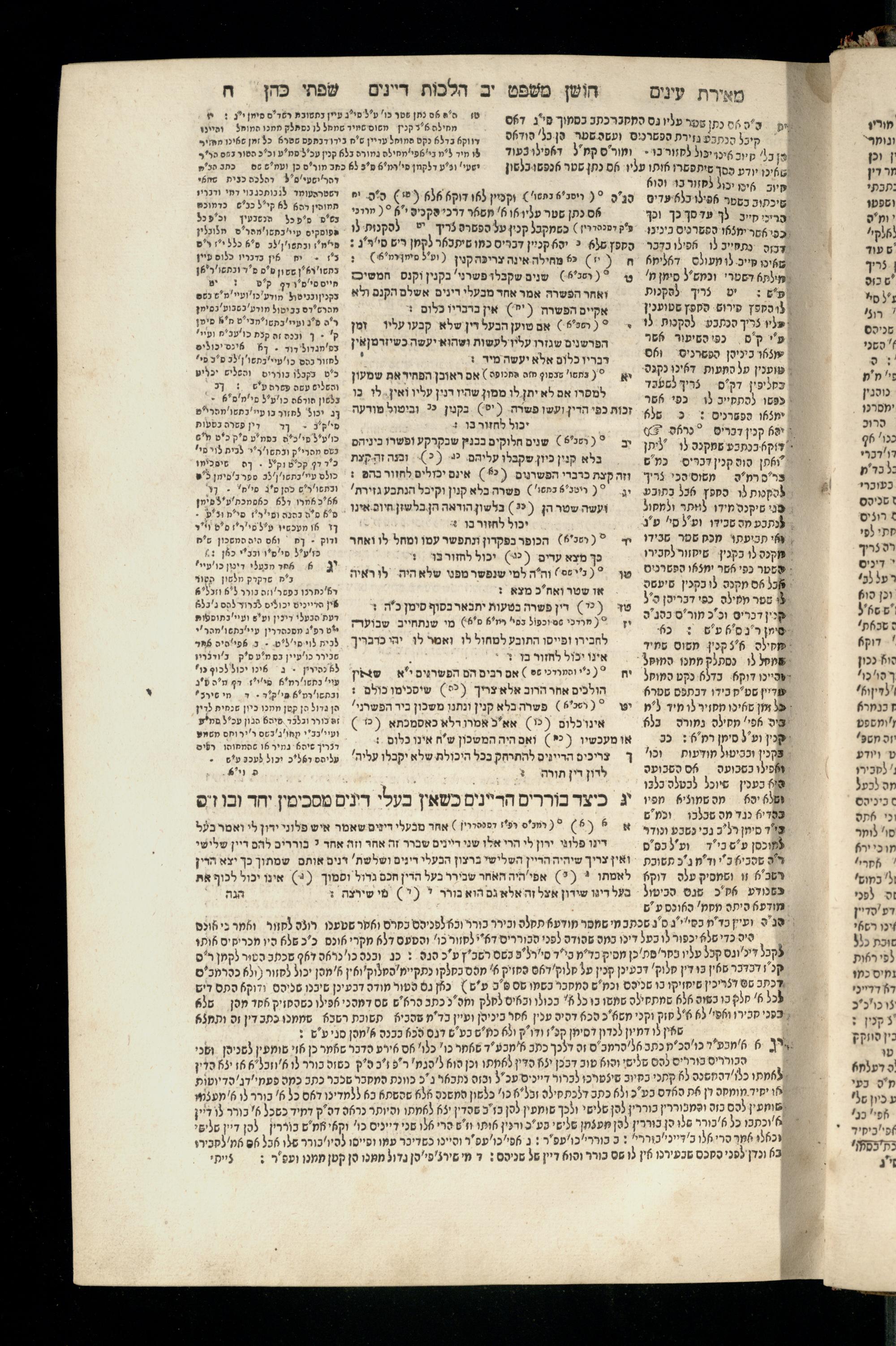 Sefer Torat kohanim : Shulḥan ʿarukh mi-ṭur Ḥoshen mishpaṭ : ʿim ha-beʾurim h.h. Meʾirat ʿenayim ṿe-Śifte kohen ; ... ṿe-hagahotaṿ ... Yosef Ḳaro z.l. ṿe-m.v.h.r.r. Mosheh Iserlez z.l. ...ספר תורת כהנים : שלחן ערוך מטור חשן משפט ; עם הביאורים ה״ה מאירת עינים ושפתי הכן ... והגהותיו מוהר״ר יוסף קארו ז״ל ומוהר״ר משה איסרלז ז״ל ...