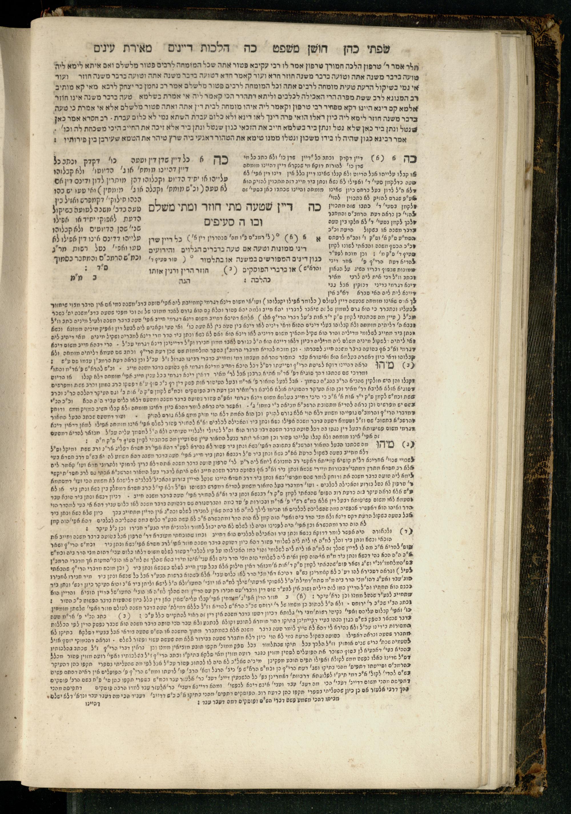 Sefer Torat kohanim : Shulḥan ʿarukh mi-ṭur Ḥoshen mishpaṭ : ʿim ha-beʾurim h.h. Meʾirat ʿenayim ṿe-Śifte kohen ; ... ṿe-hagahotaṿ ... Yosef Ḳaro z.l. ṿe-m.v.h.r.r. Mosheh Iserlez z.l. ...ספר תורת כהנים : שלחן ערוך מטור חשן משפט ; עם הביאורים ה״ה מאירת עינים ושפתי הכן ... והגהותיו מוהר״ר יוסף קארו ז״ל ומוהר״ר משה איסרלז ז״ל ...